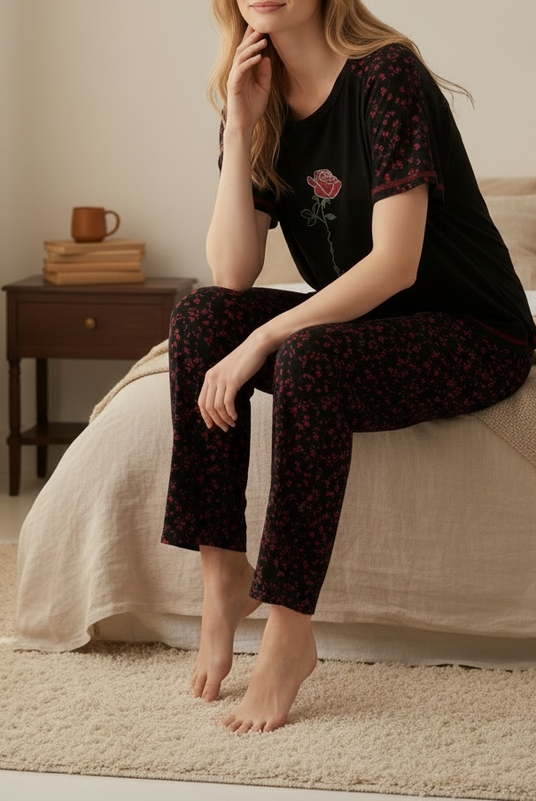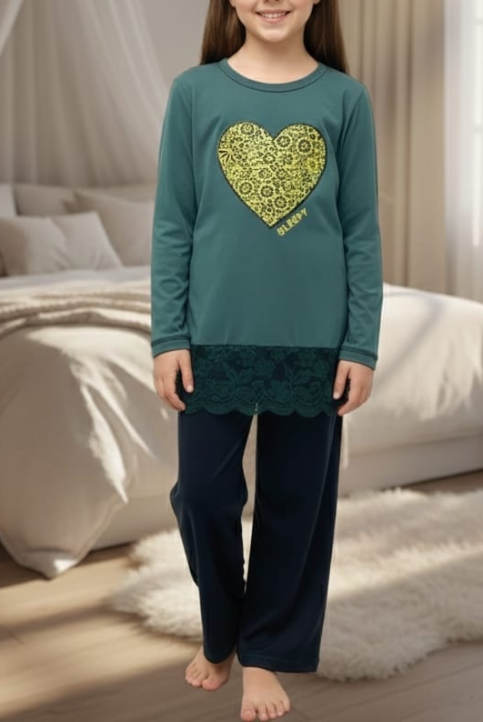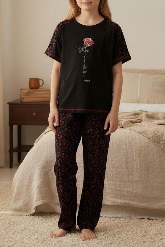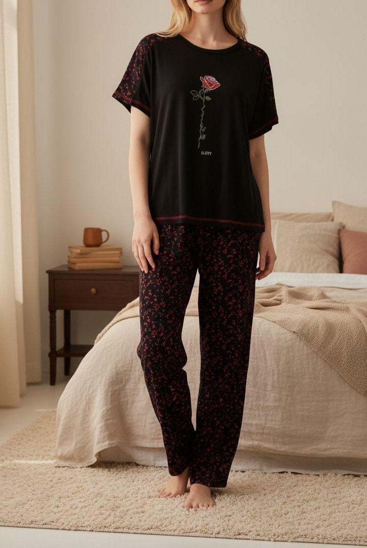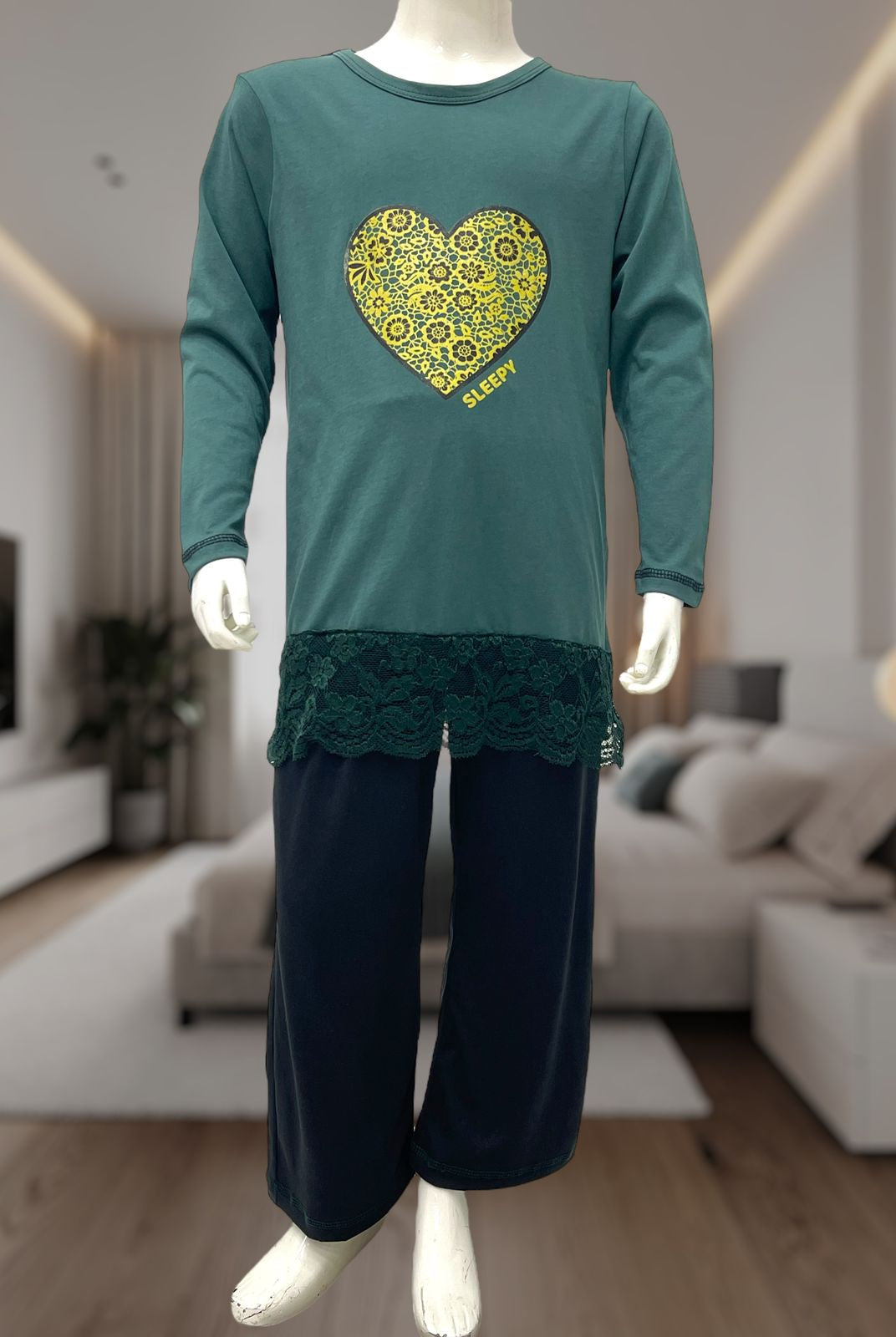 Girls Souk 3/4 Black Sleepy Love Print Pyjama