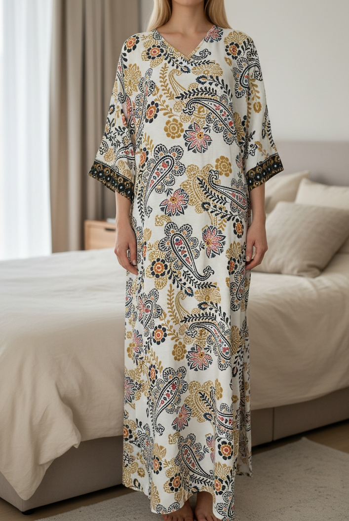 Ladies Cream Zip Gown Flower Print