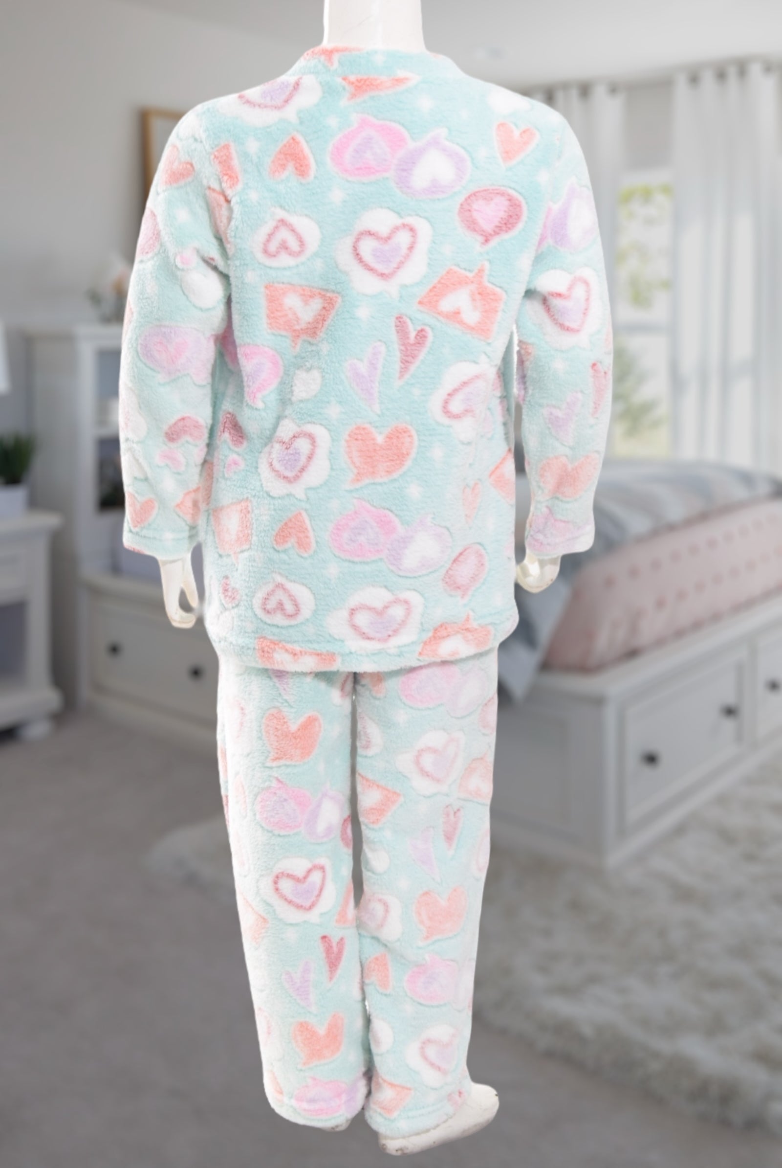 Girls Green Coral Fleece Glow In The Dark Pyjama