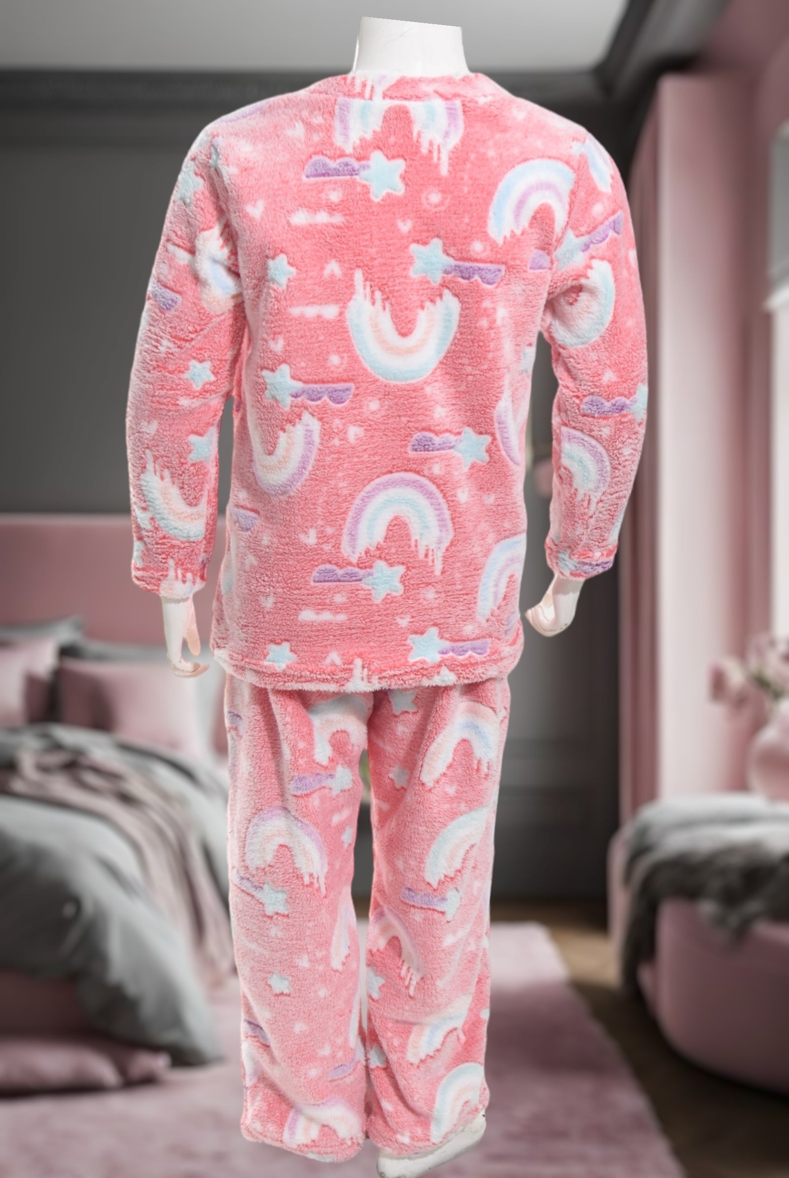 Girls Red Coral Fleece Glow In The Dark Pyjama