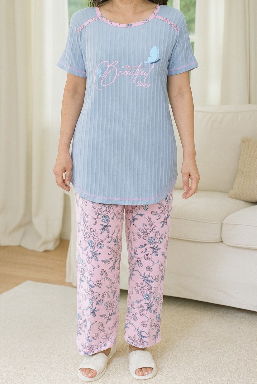 Girls Dark Teal Green Just Beautiful Print Pyjama