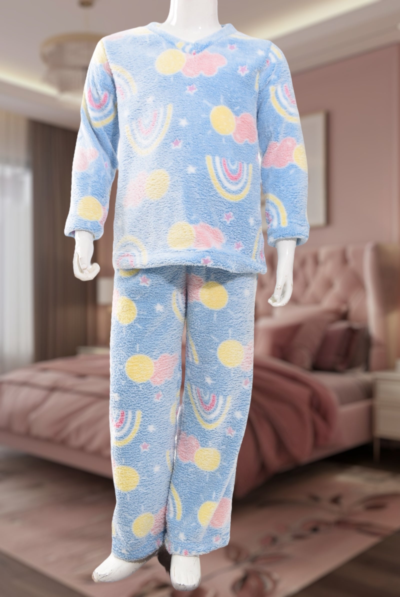 Girls Blue Coral Fleece Glow In The Dark Pyjama