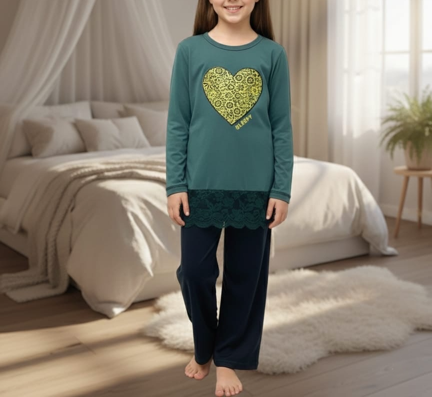 Girls Souk 3/4 Brown Heart Print Pyjama
