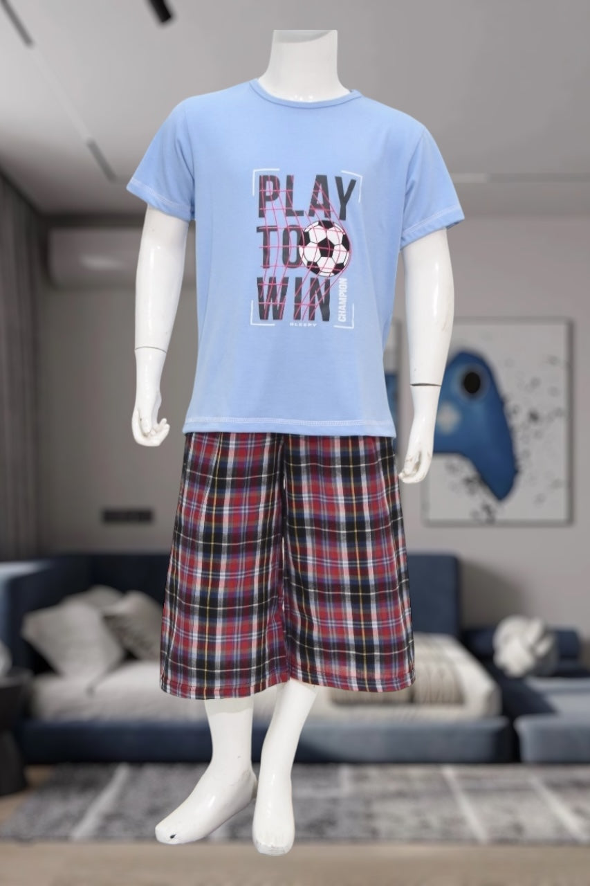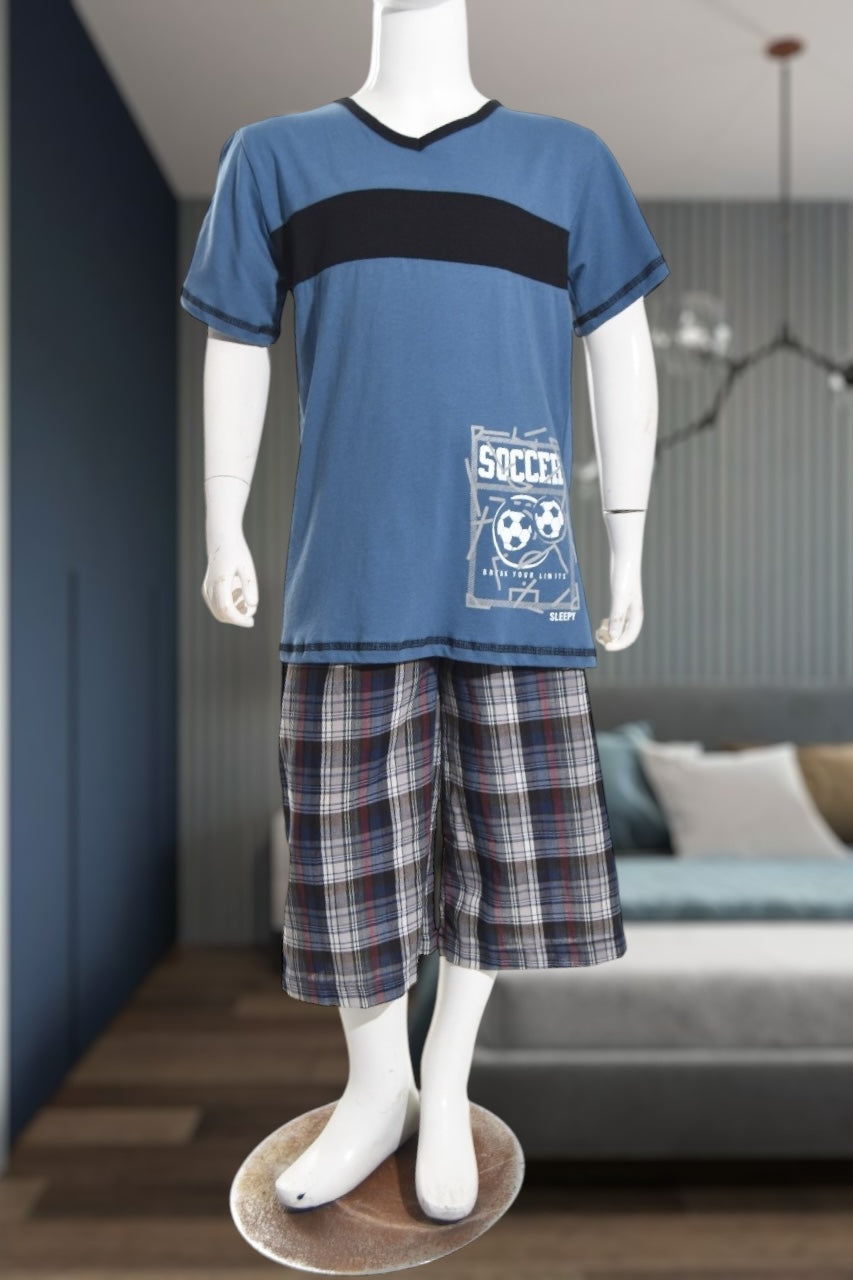 Boys Blue Soccer Print Pyjama