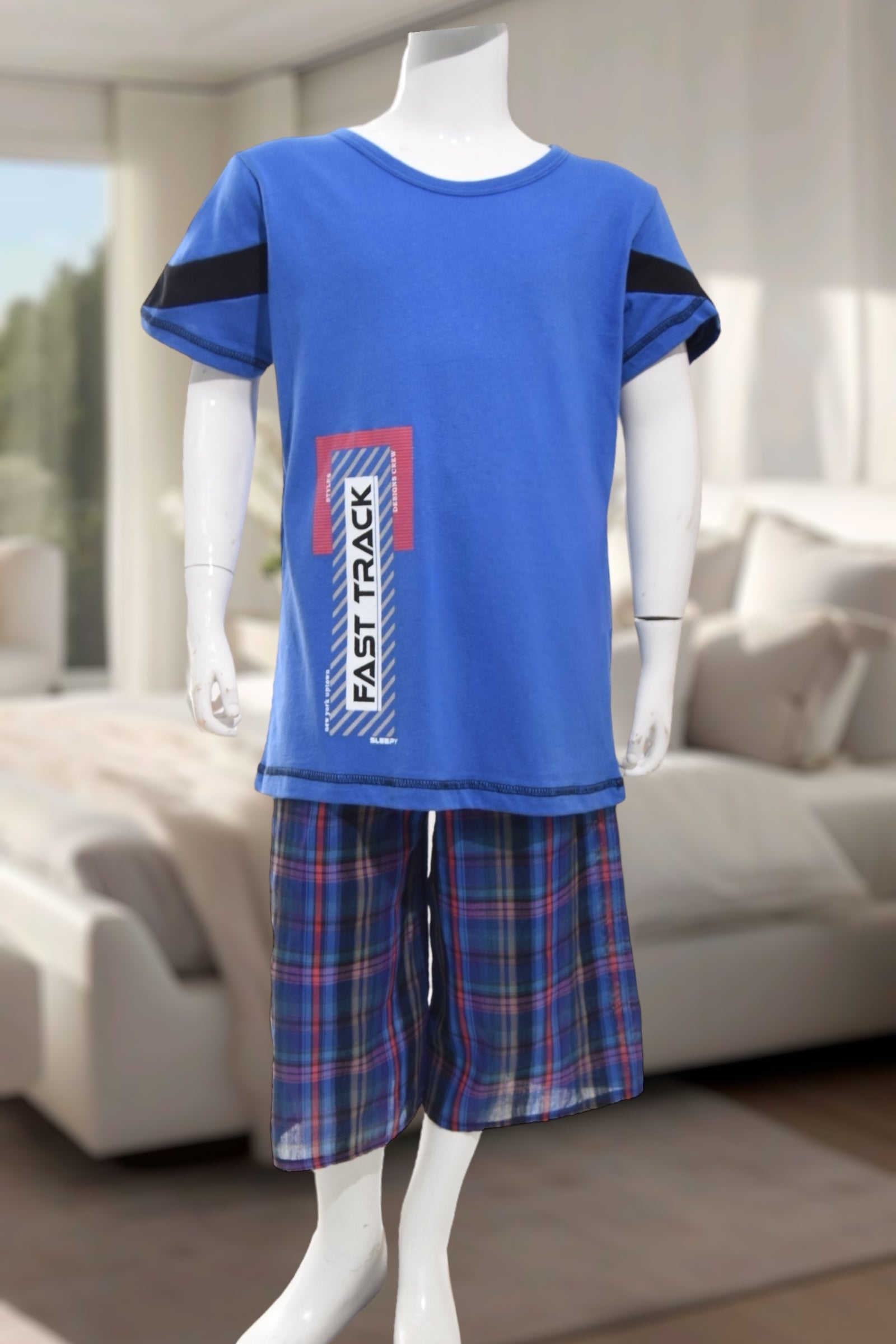 Boys Royal Blue Track Print Pyjama