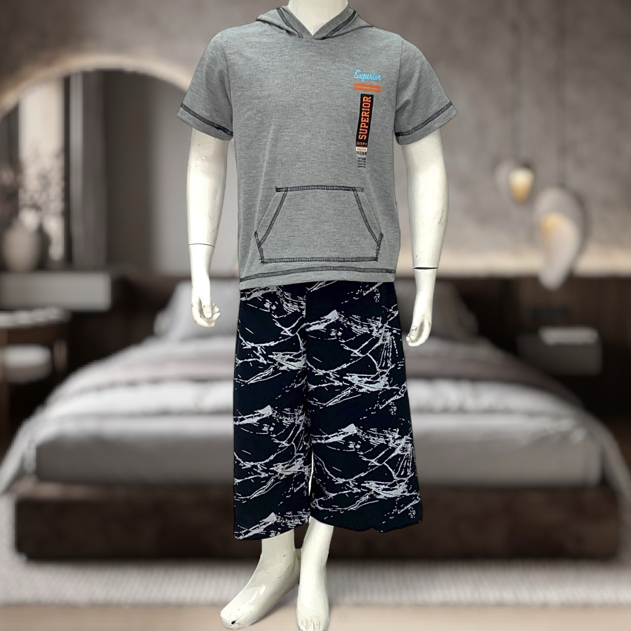 Boys Grey Hooded Superior Print Pyjama