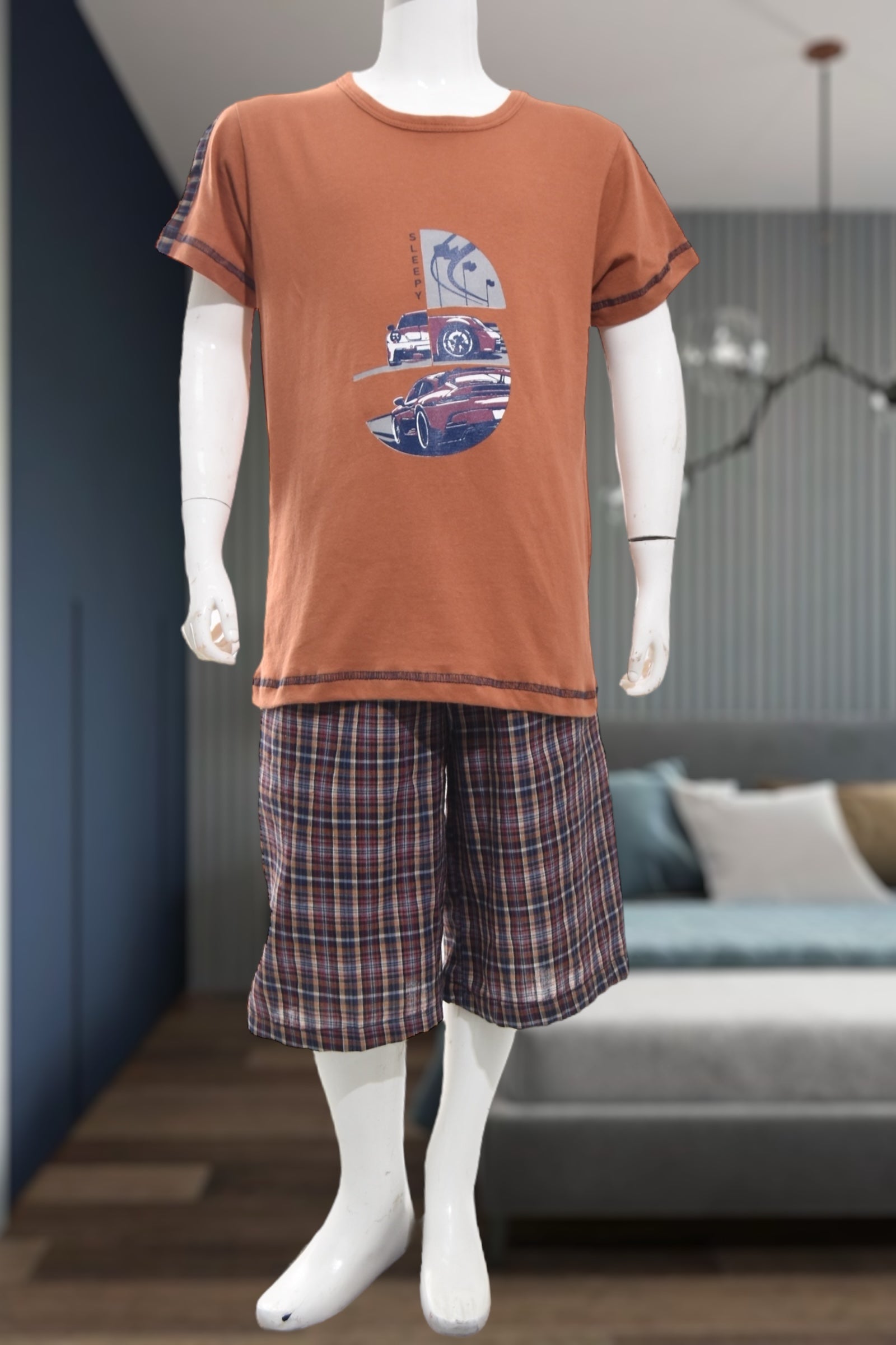 Boys Brown Car Print Pyjama