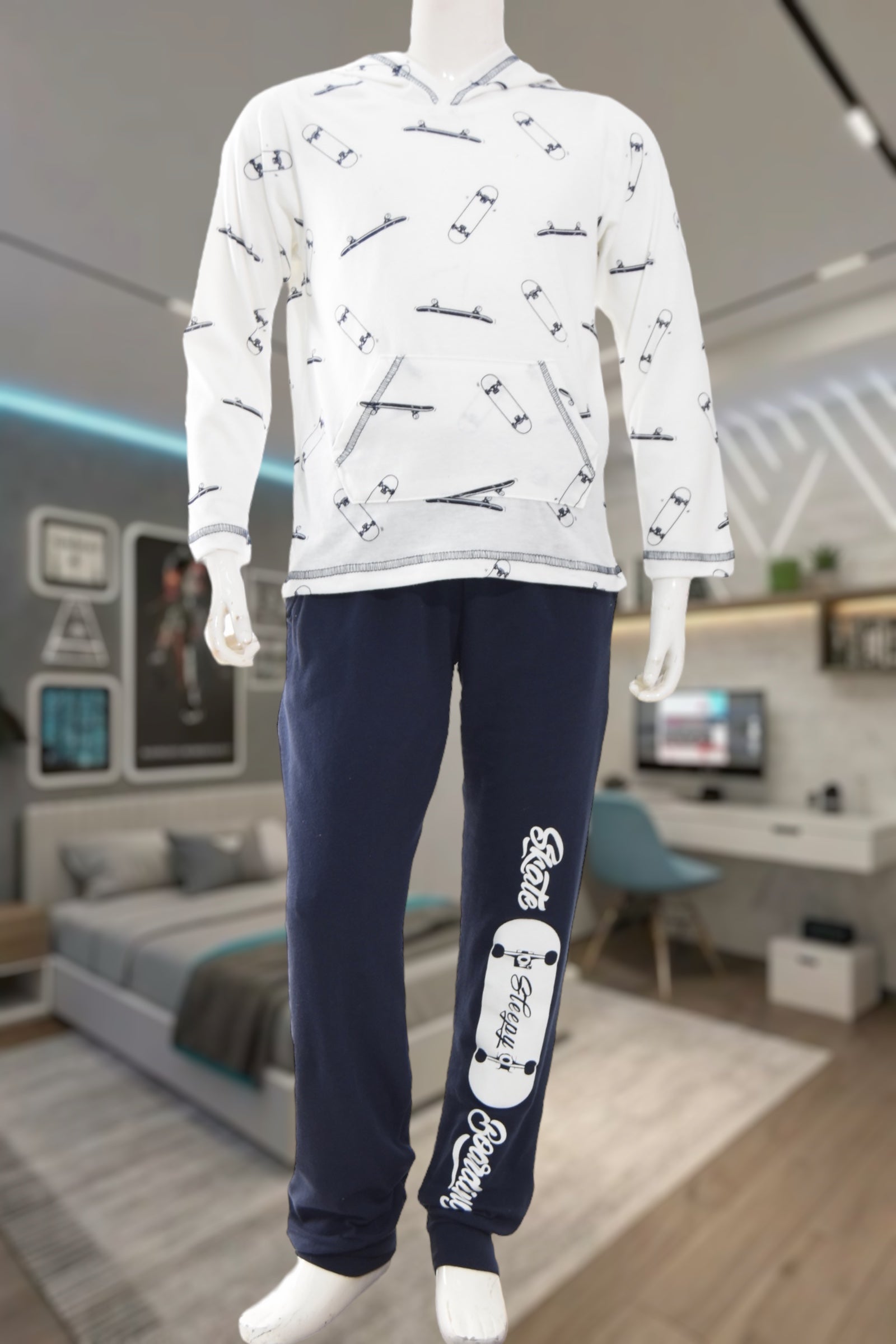 Boys White & Navy Skateboard Pyjama
