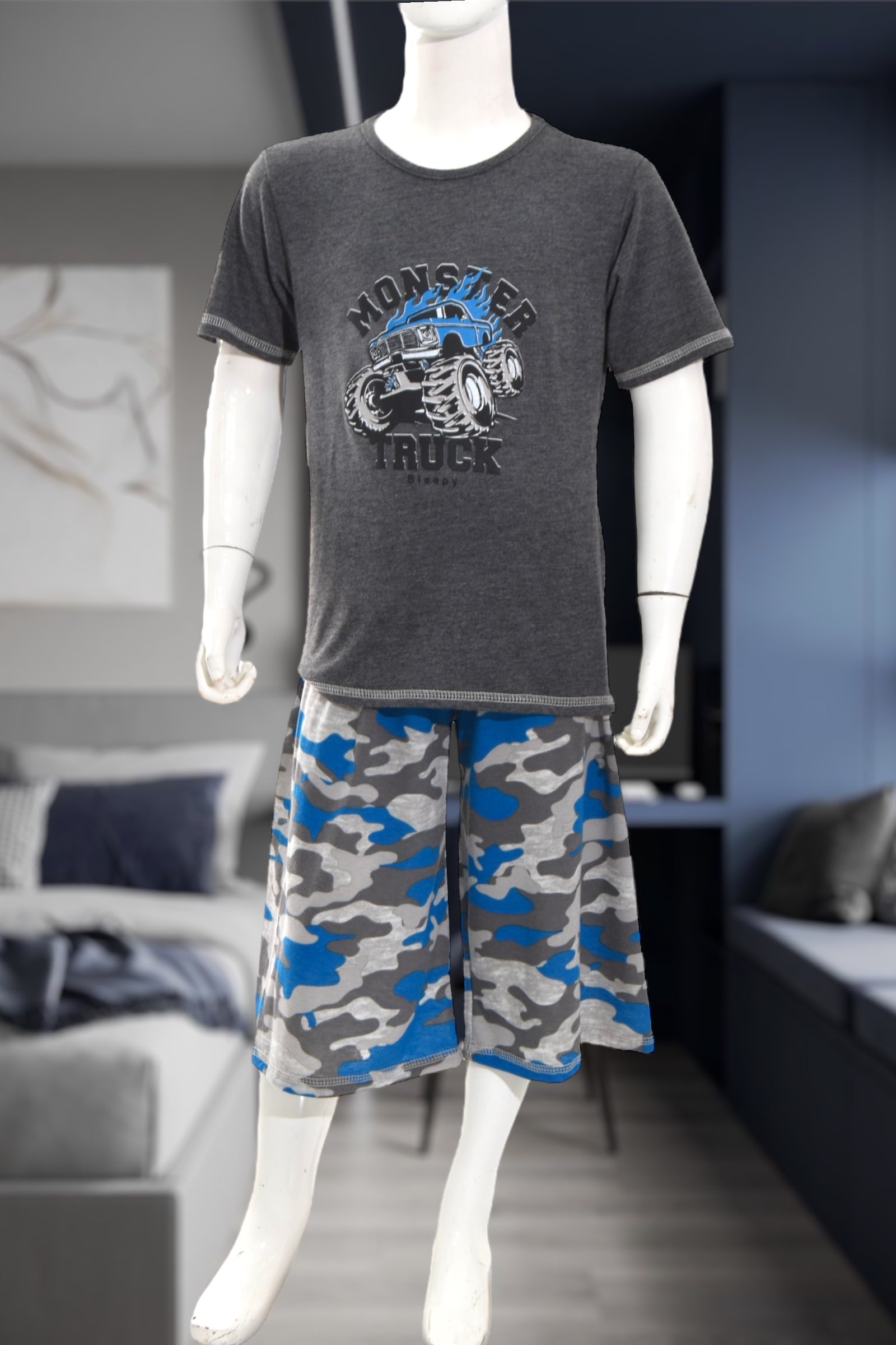 Boys Souk Grey Monster Truck Print Pyjama