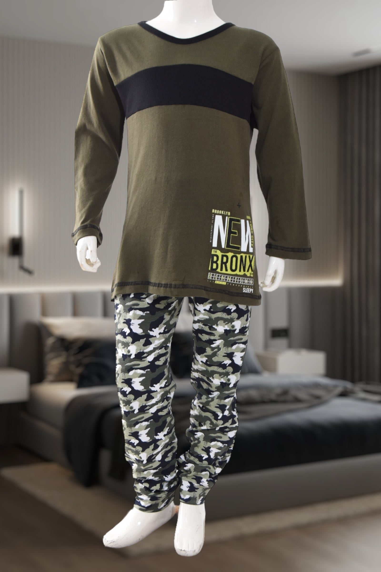 Boys Green Bronx Print Pyjama