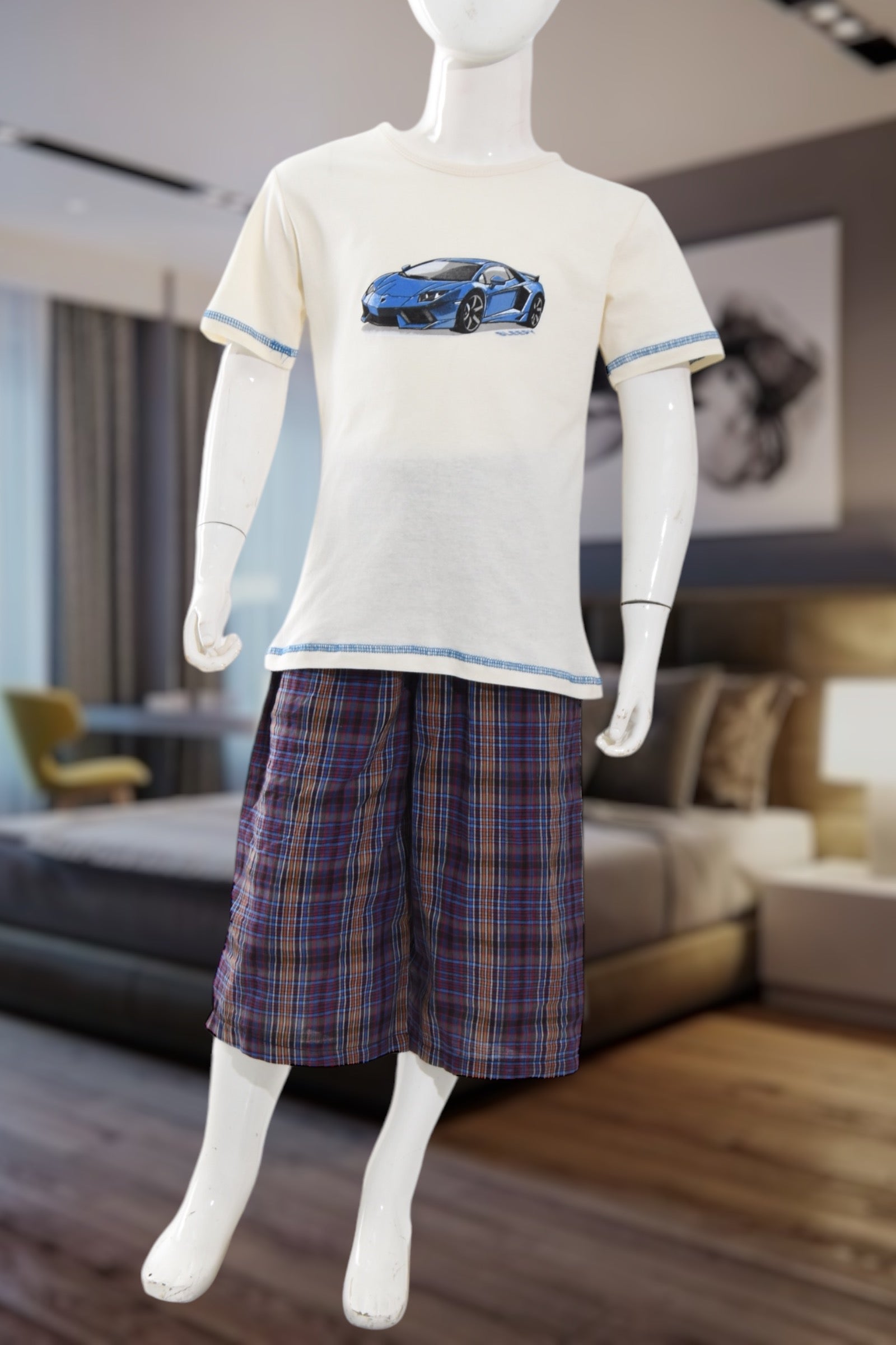 Boys Blue Car Print