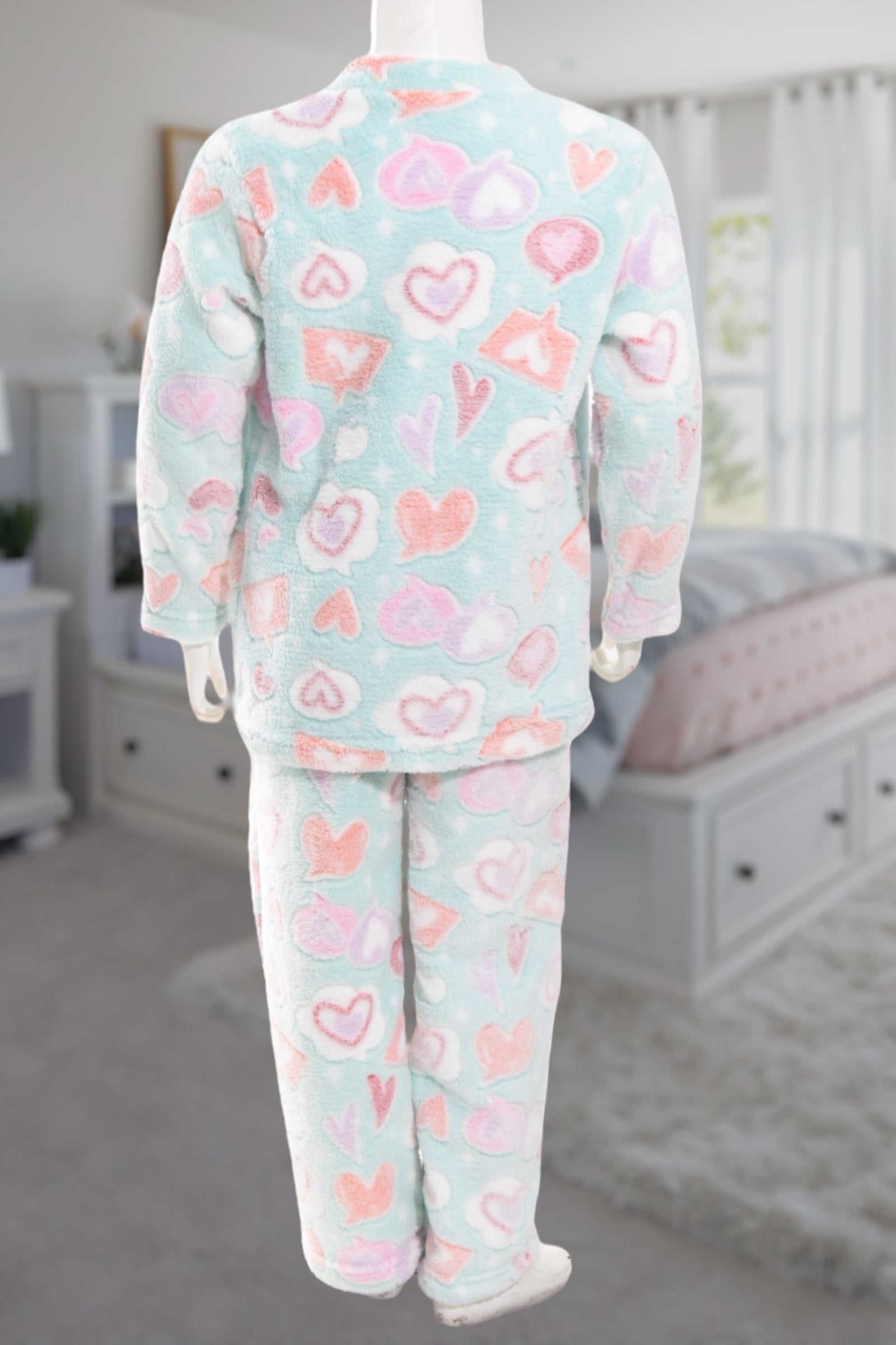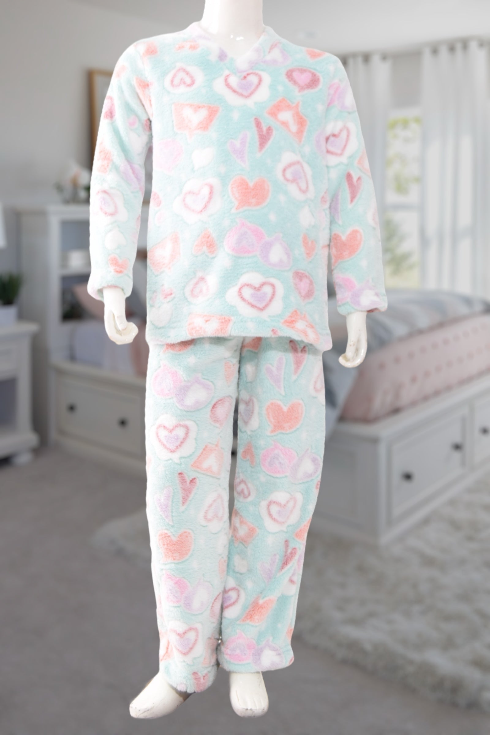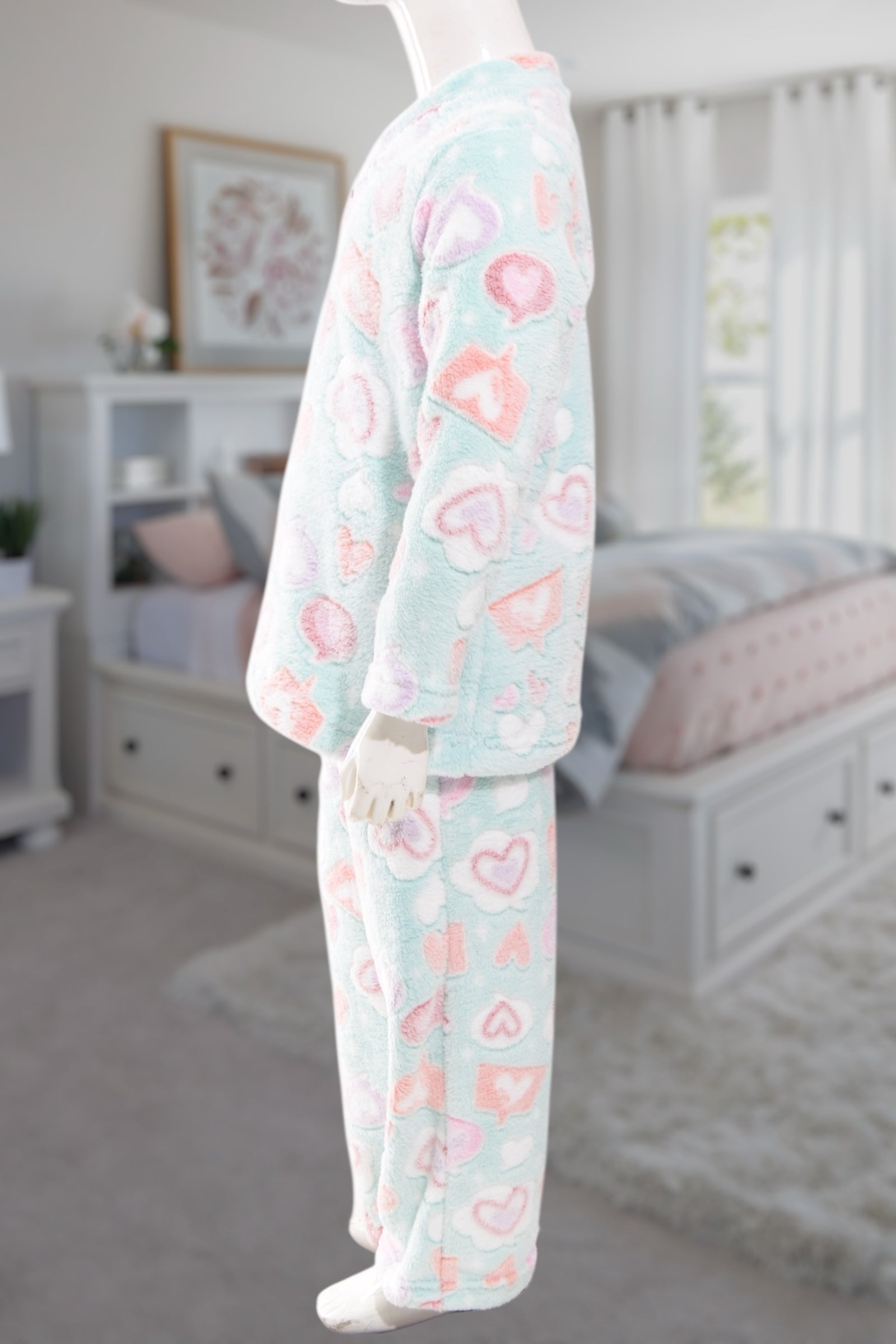 Girls Green Coral Fleece Glow In The Dark Pyjama