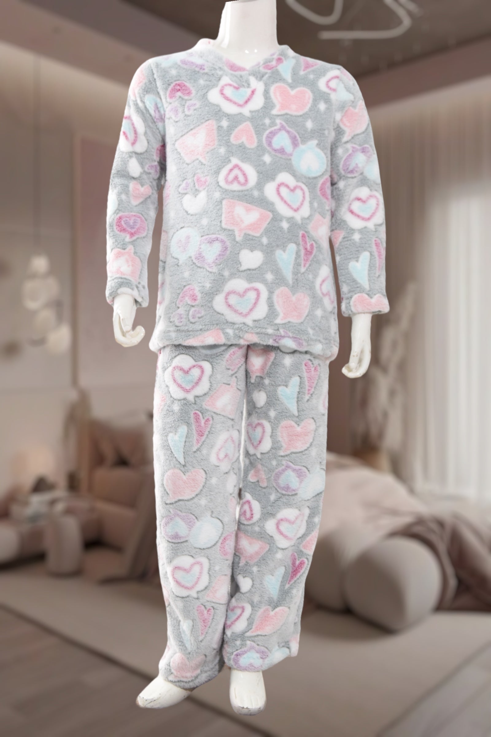 Girls Grey Coral Fleece Glow In The Dark Pyjama
