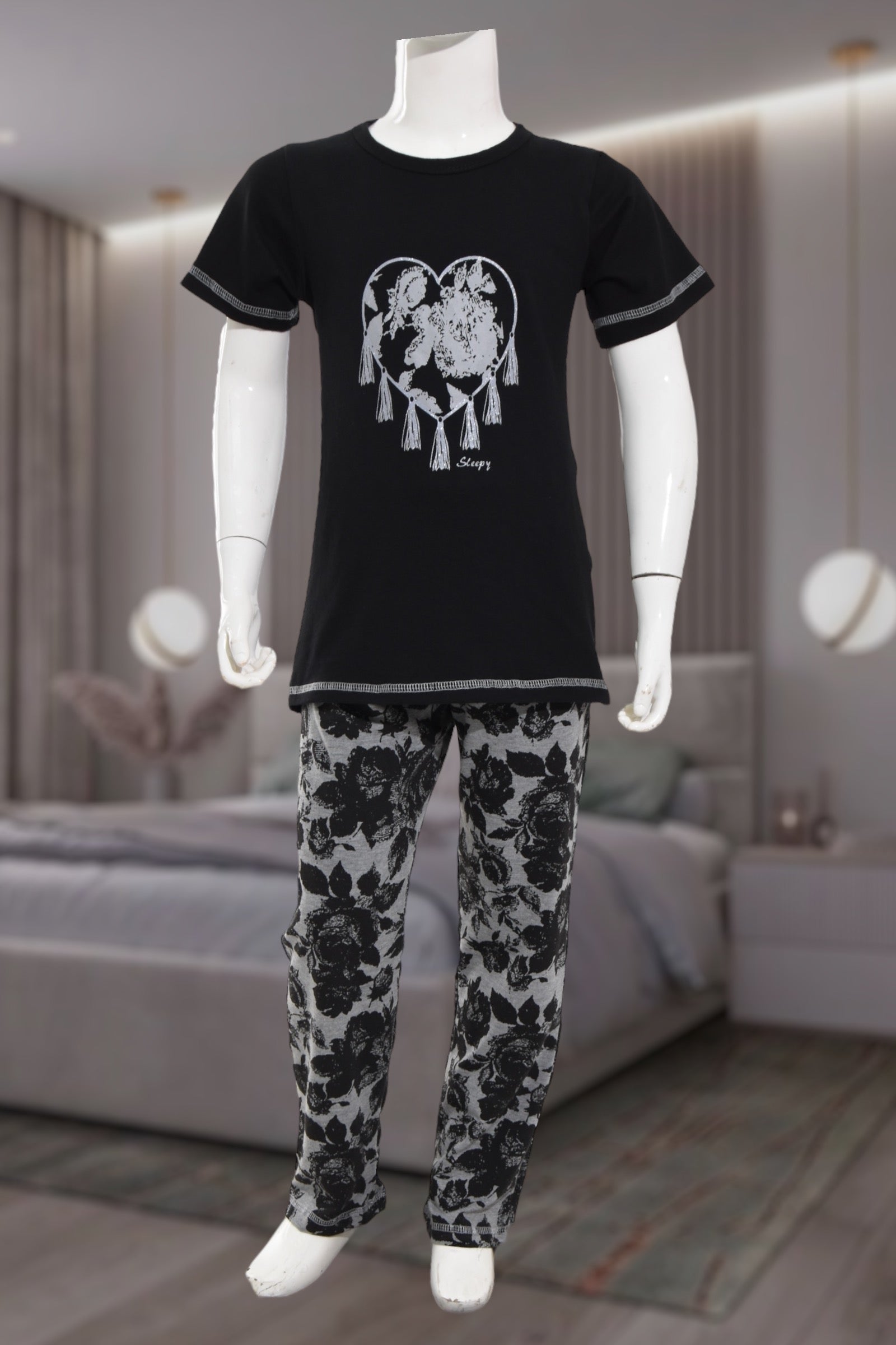 Girls Souk Black Heart Print Pyjama