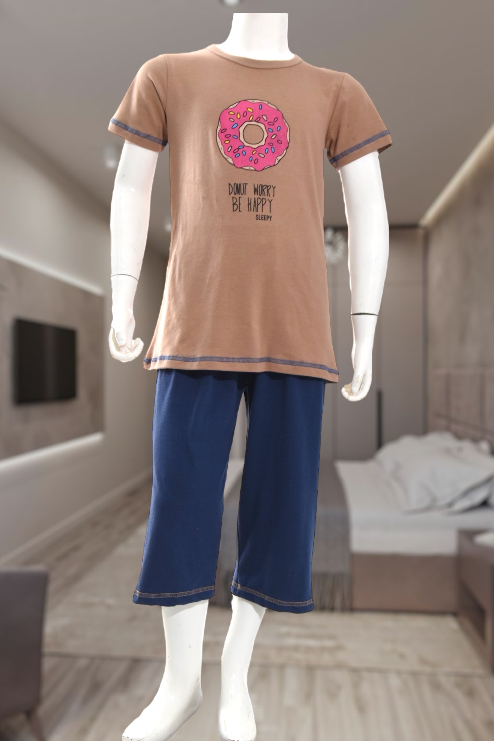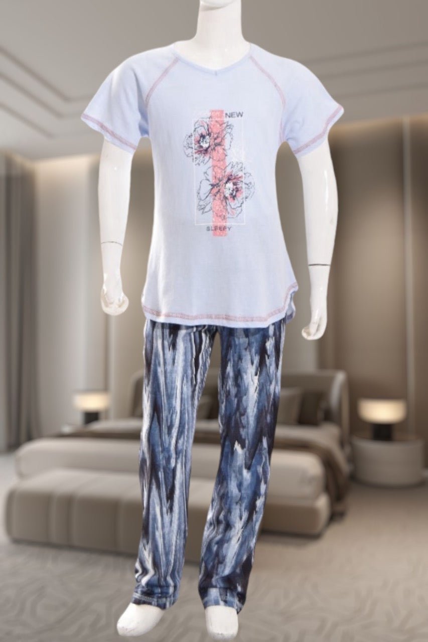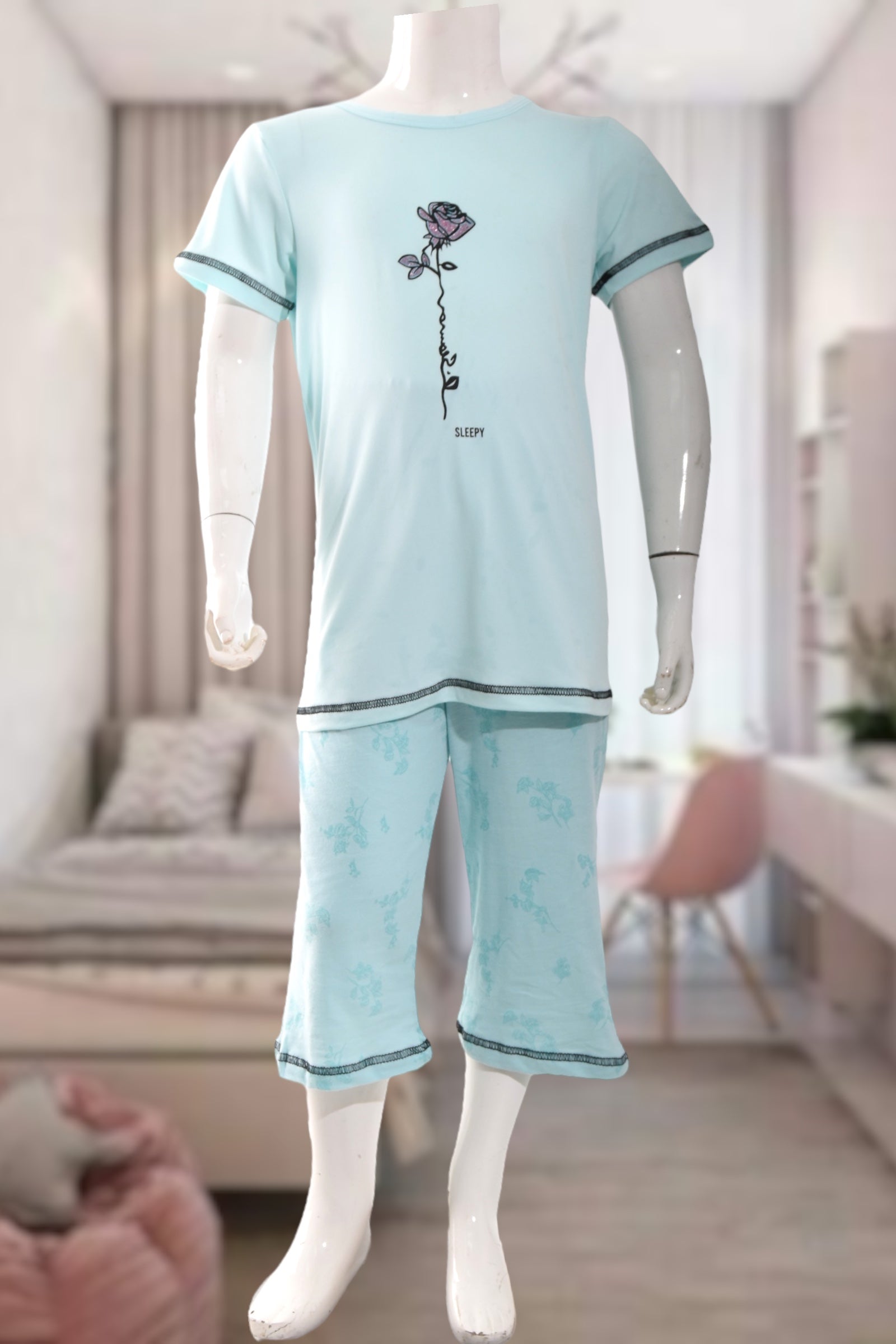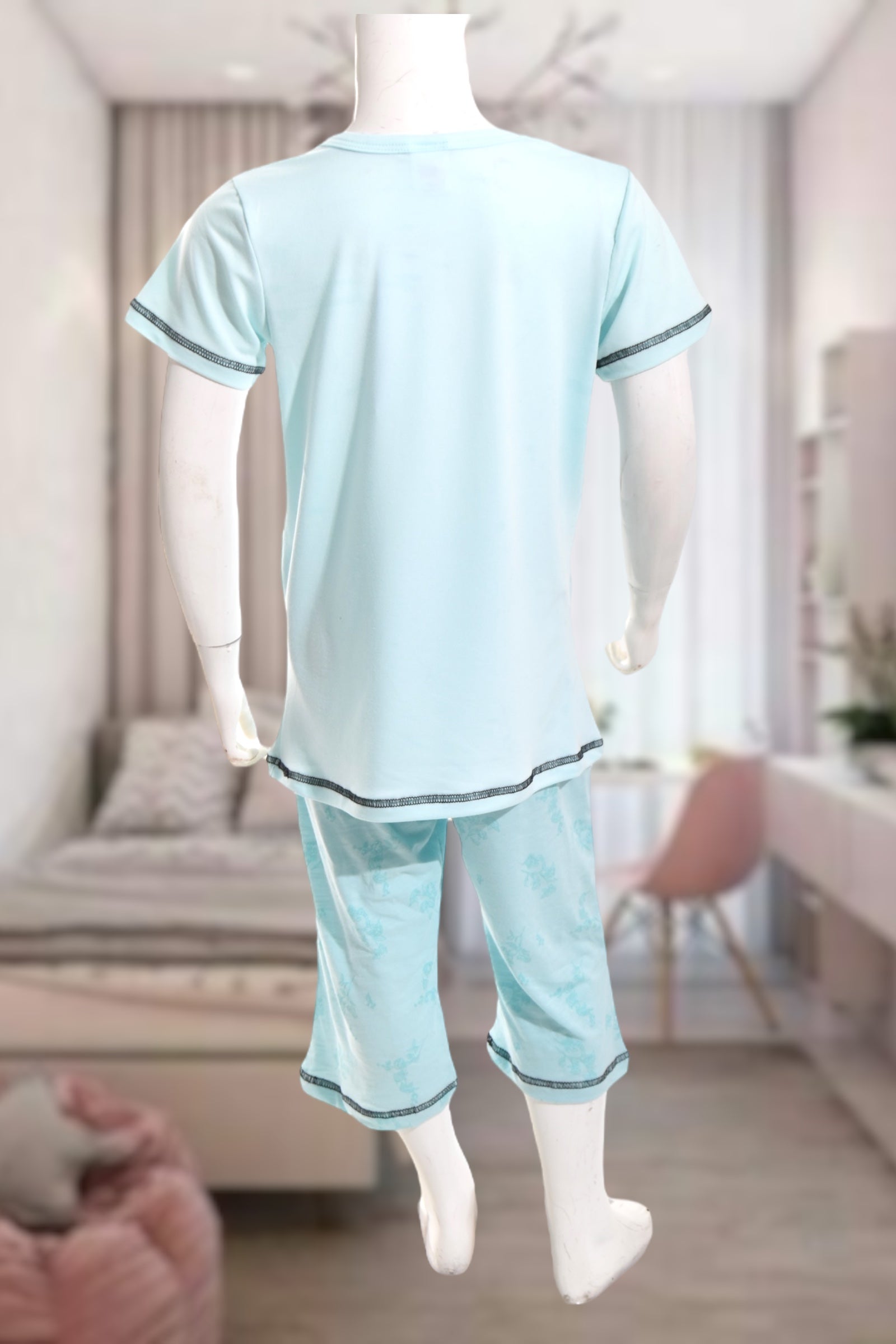 Girls Souk 3/4 Light Blue Flower Print Pyjama