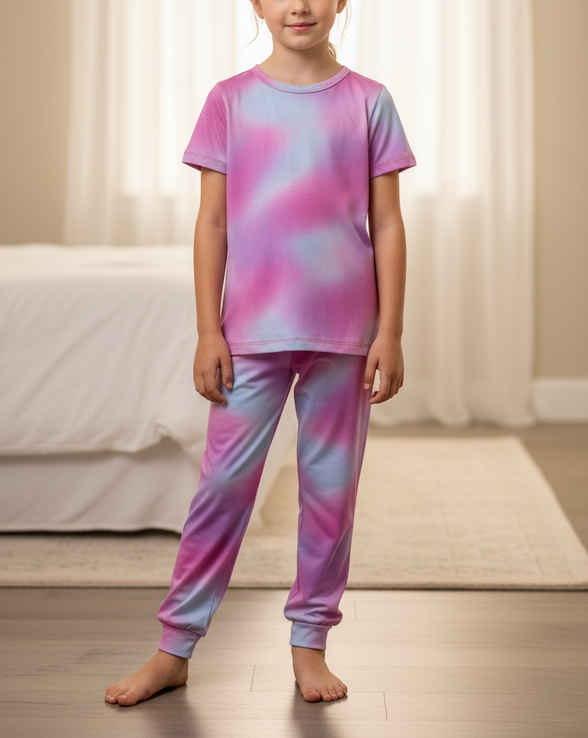 Girls Souk Pink & Lilac Tie-Dye Pyjama