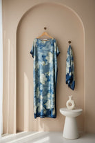 Ladies Souk Light Blue Flower Print Gown With Scarf
