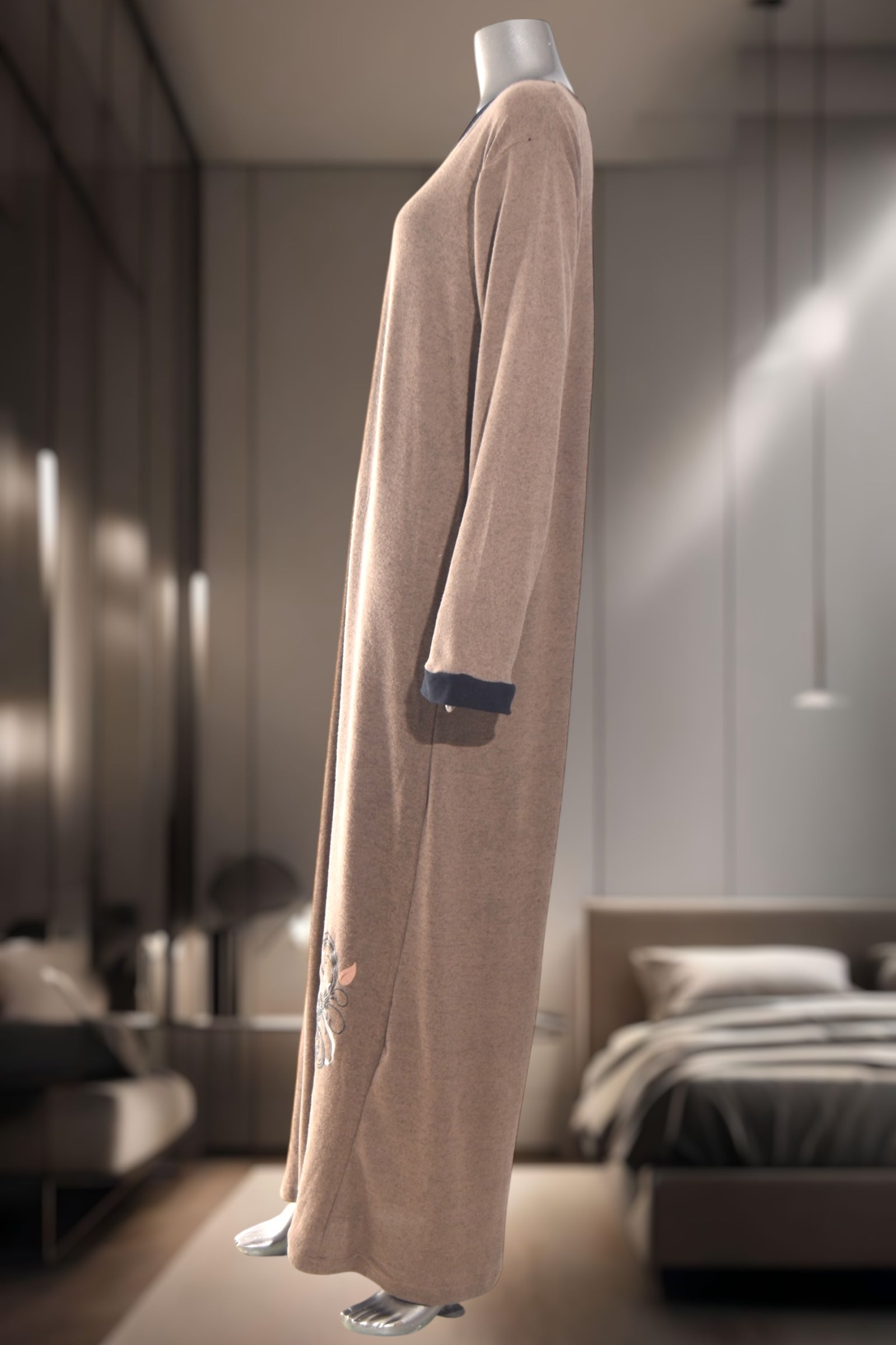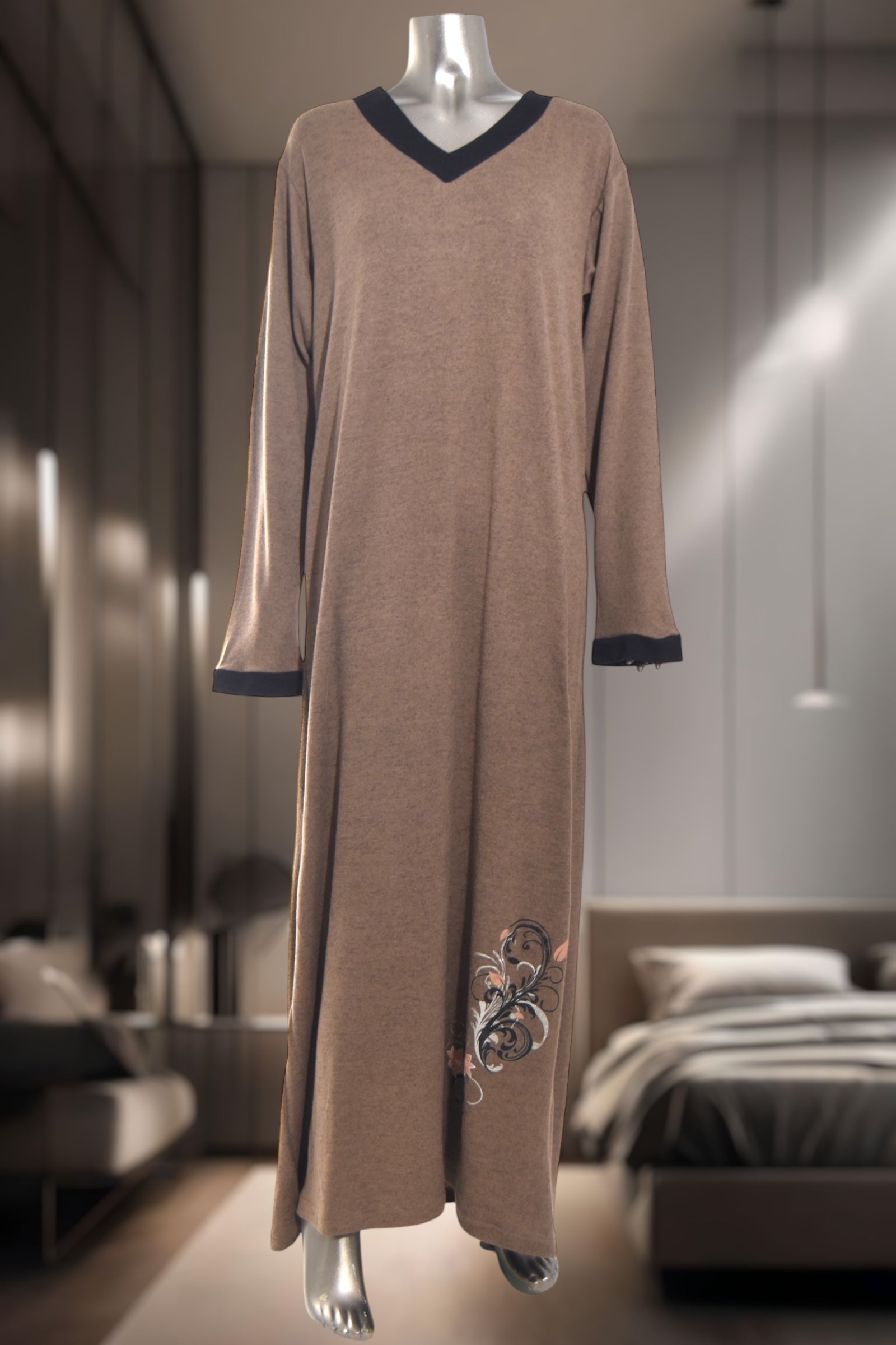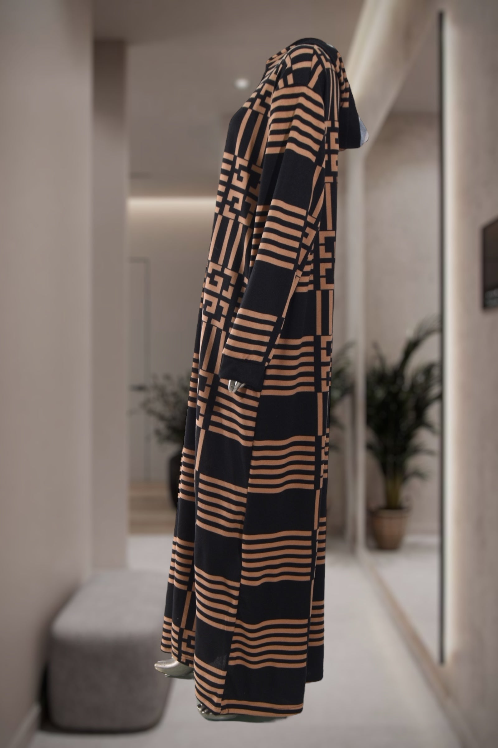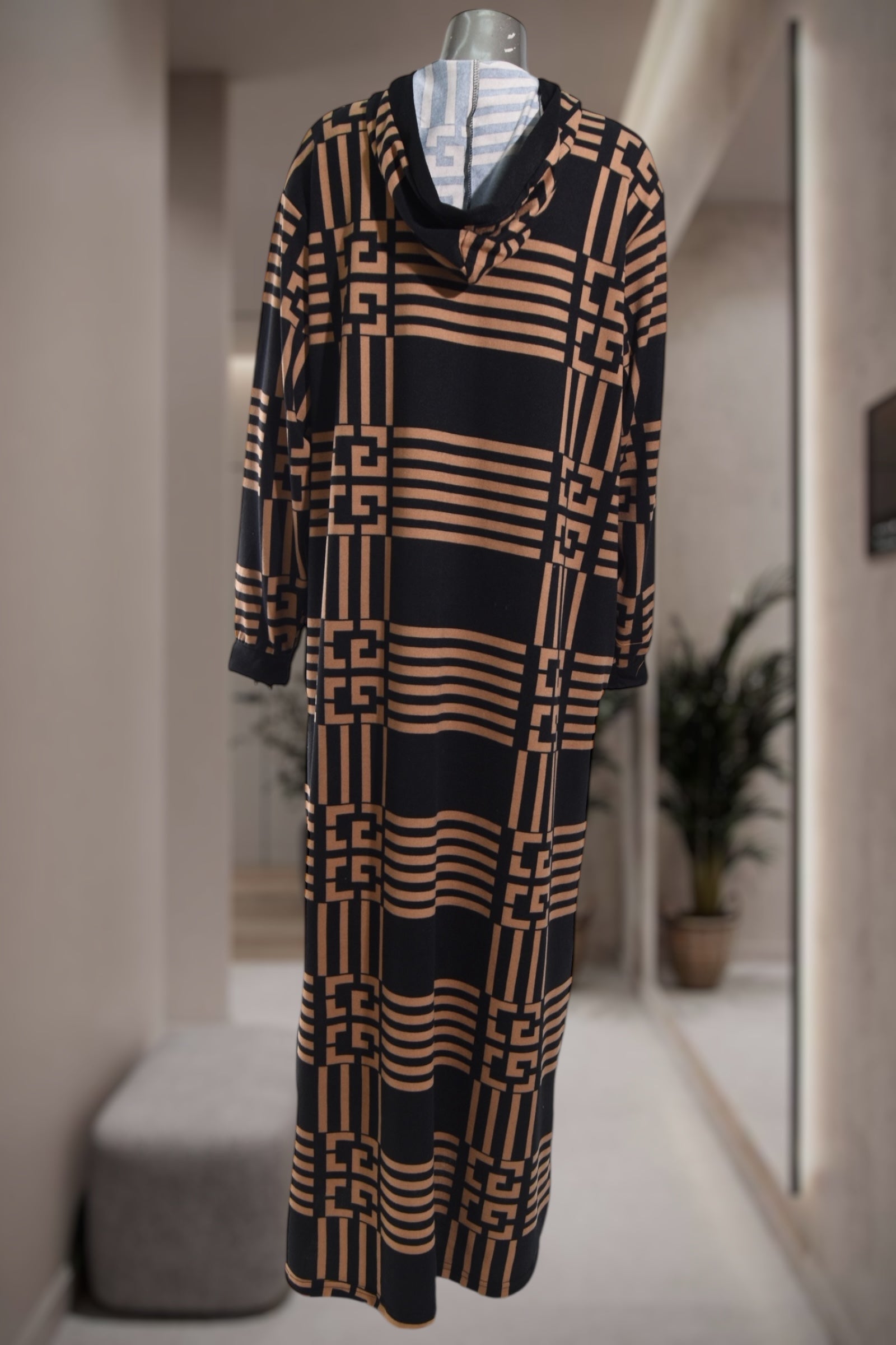 Ladies Zip Gown with Pocket And Hoodie - Black & Brown
