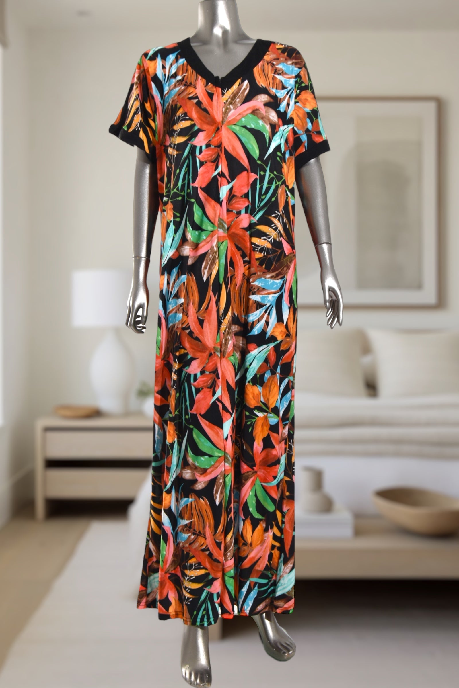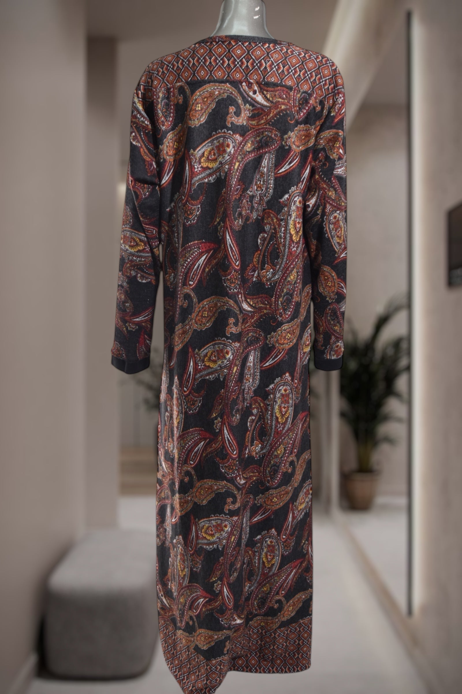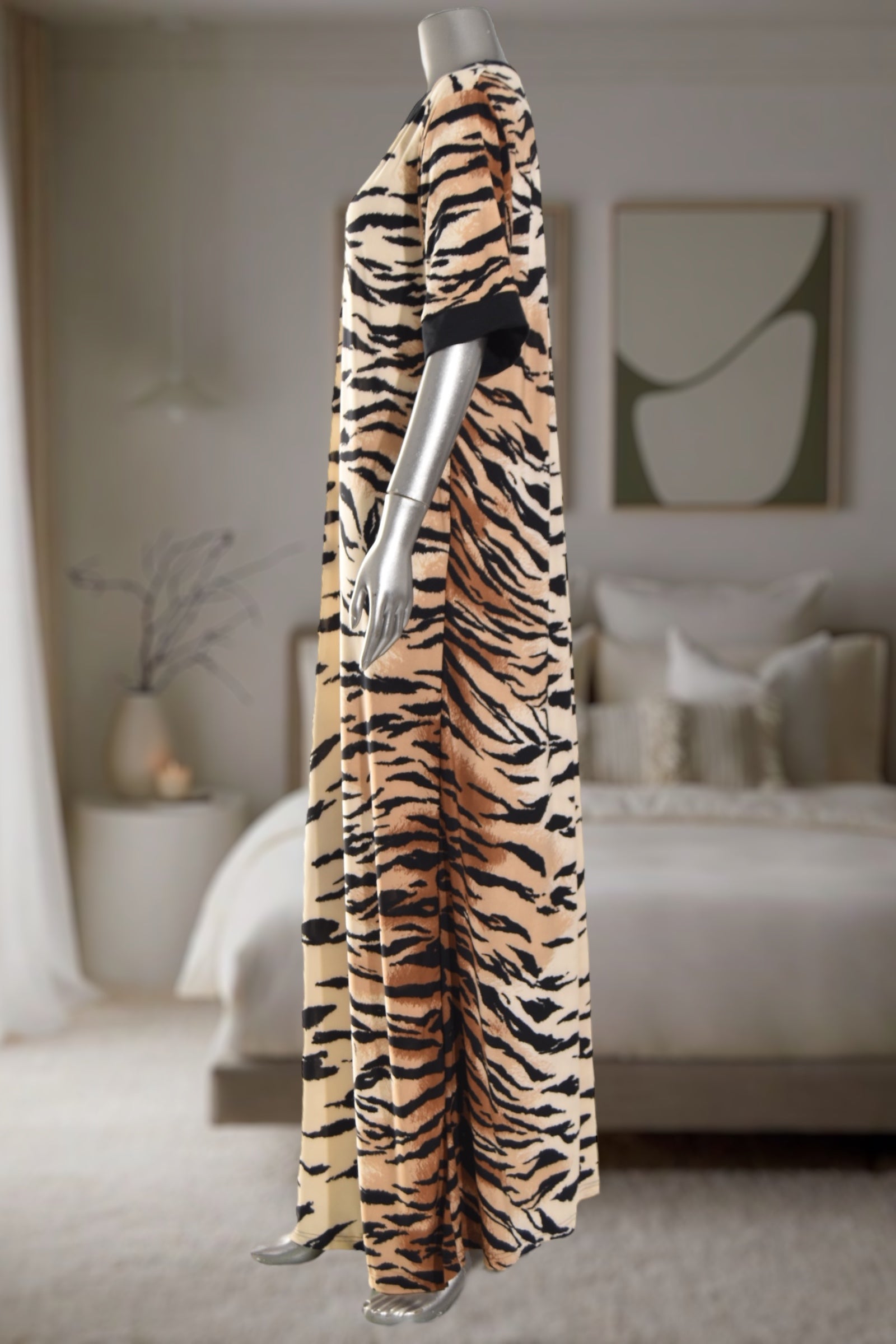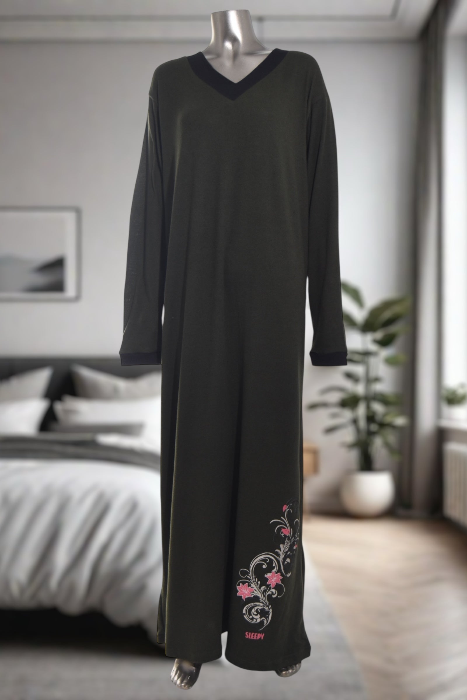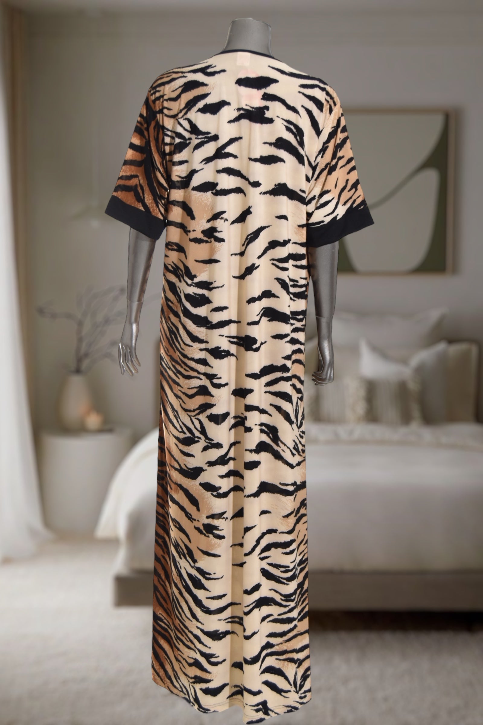 Ladies Zip Gown with Pocket And Hoodie - Black & Brown