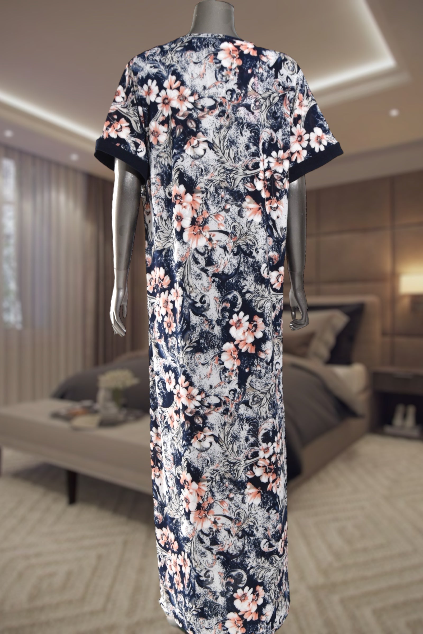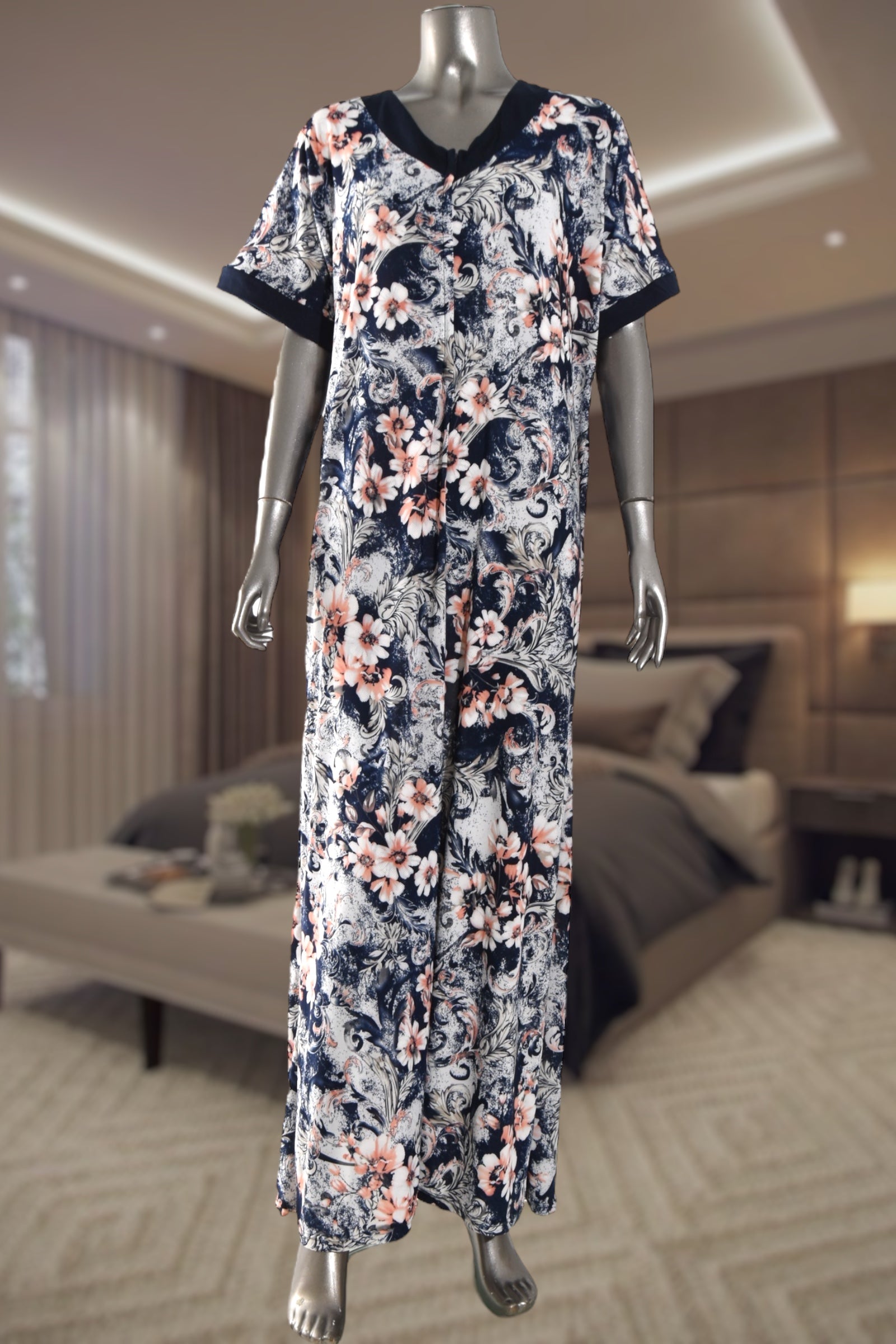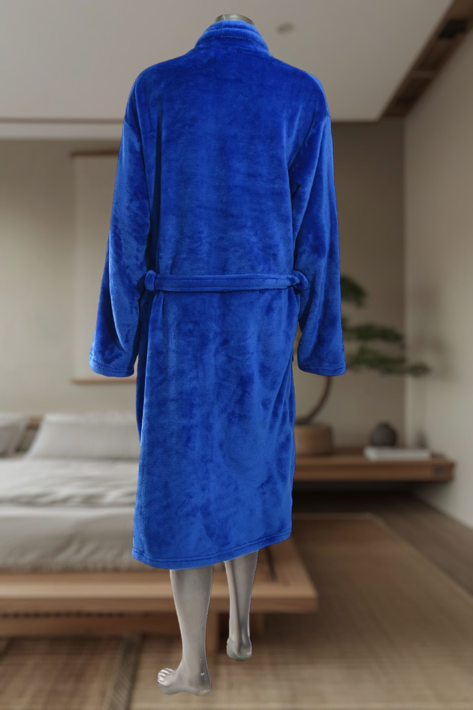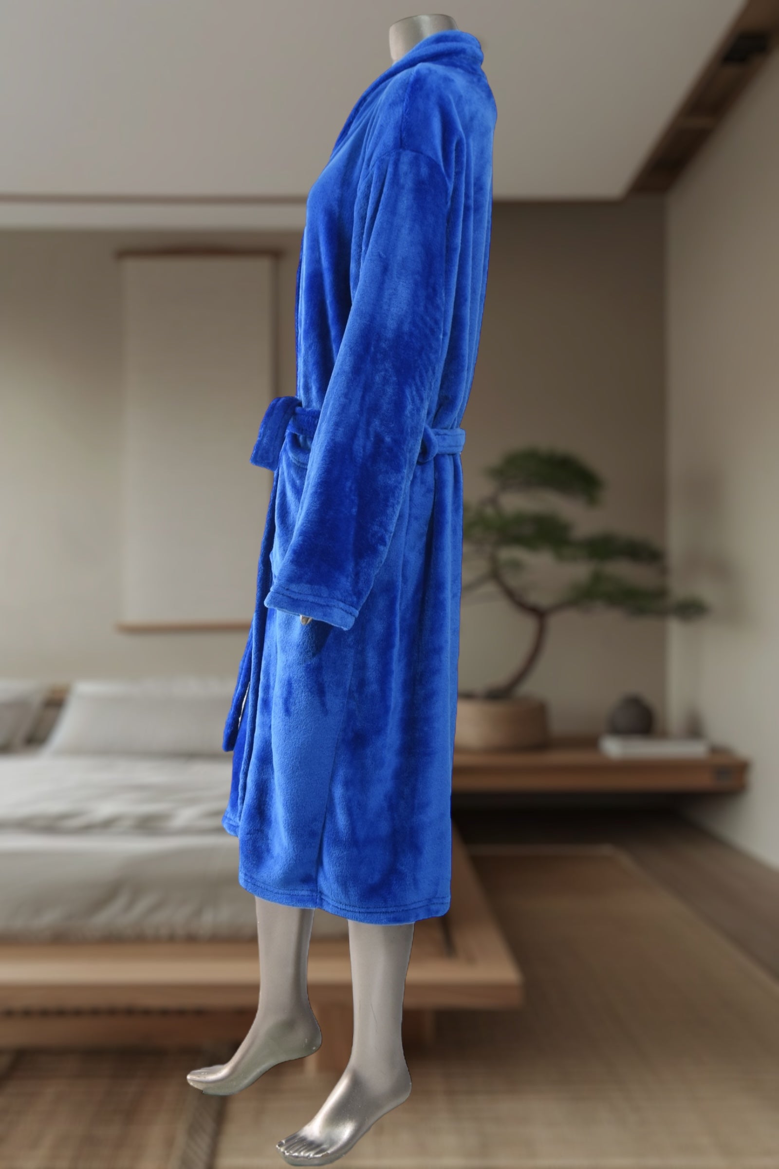 Ladies Velour Zip Gown with Pocket And Hoodie - Blue