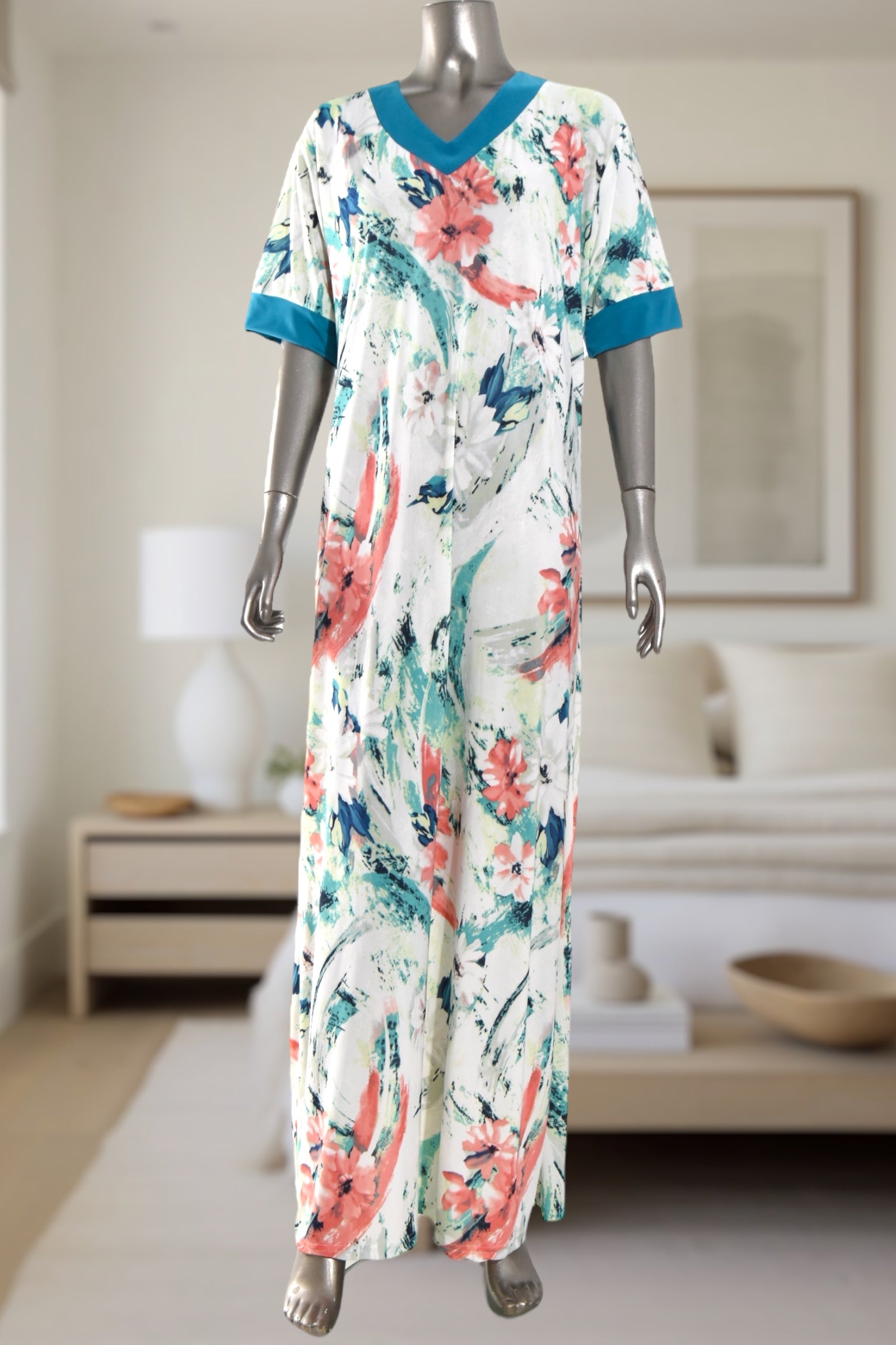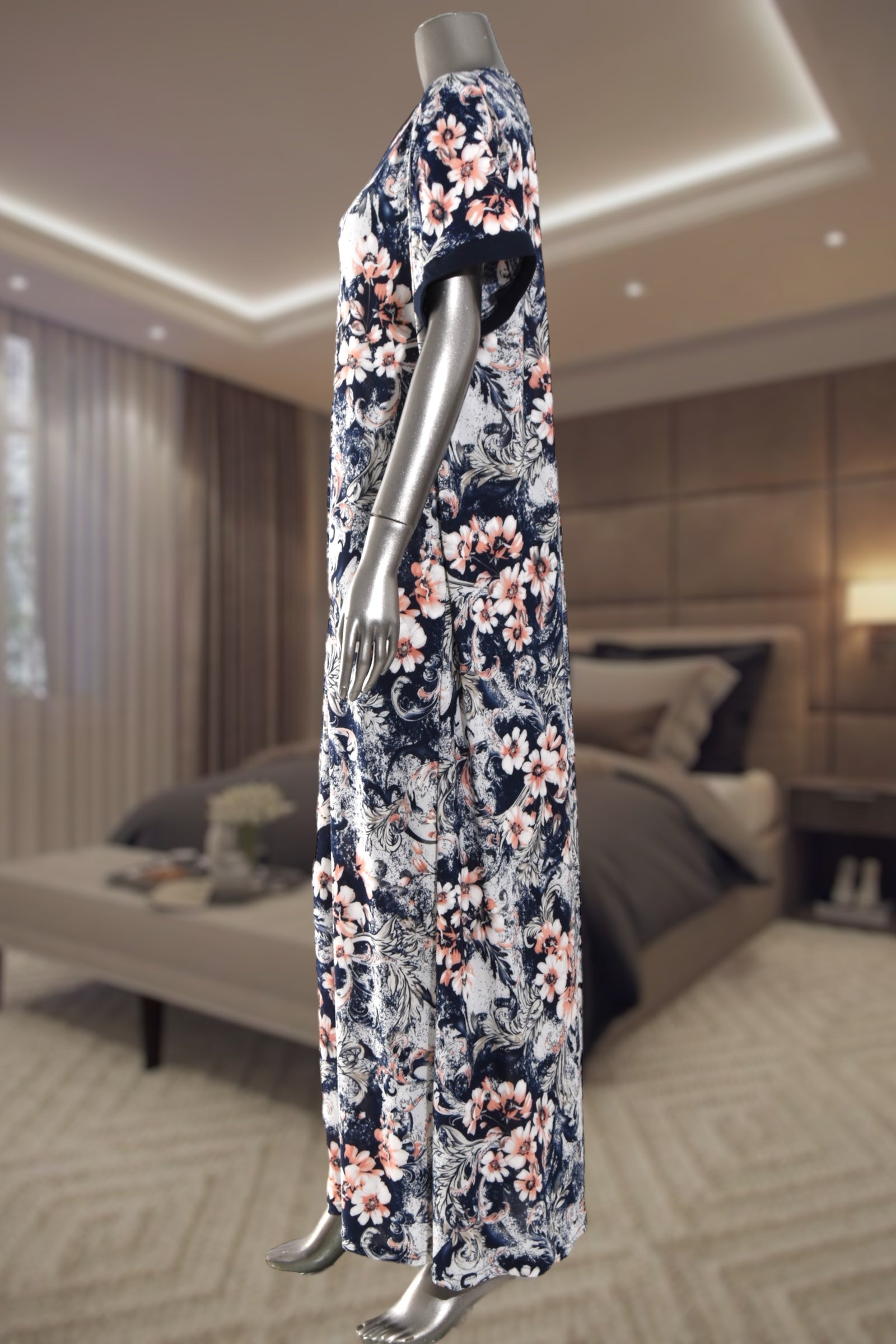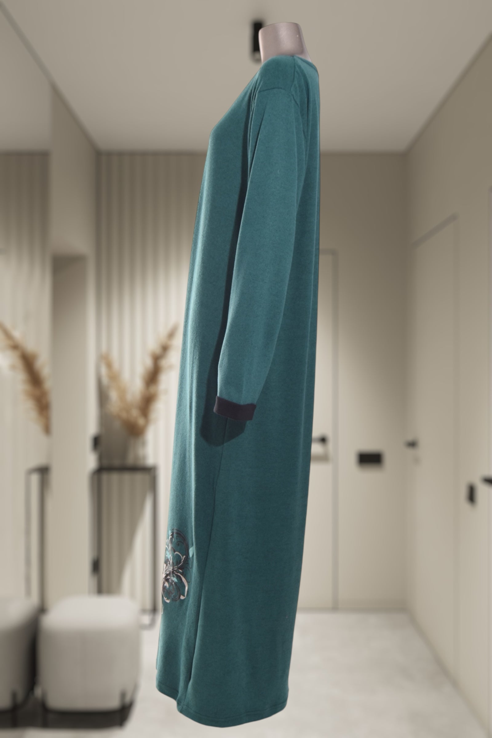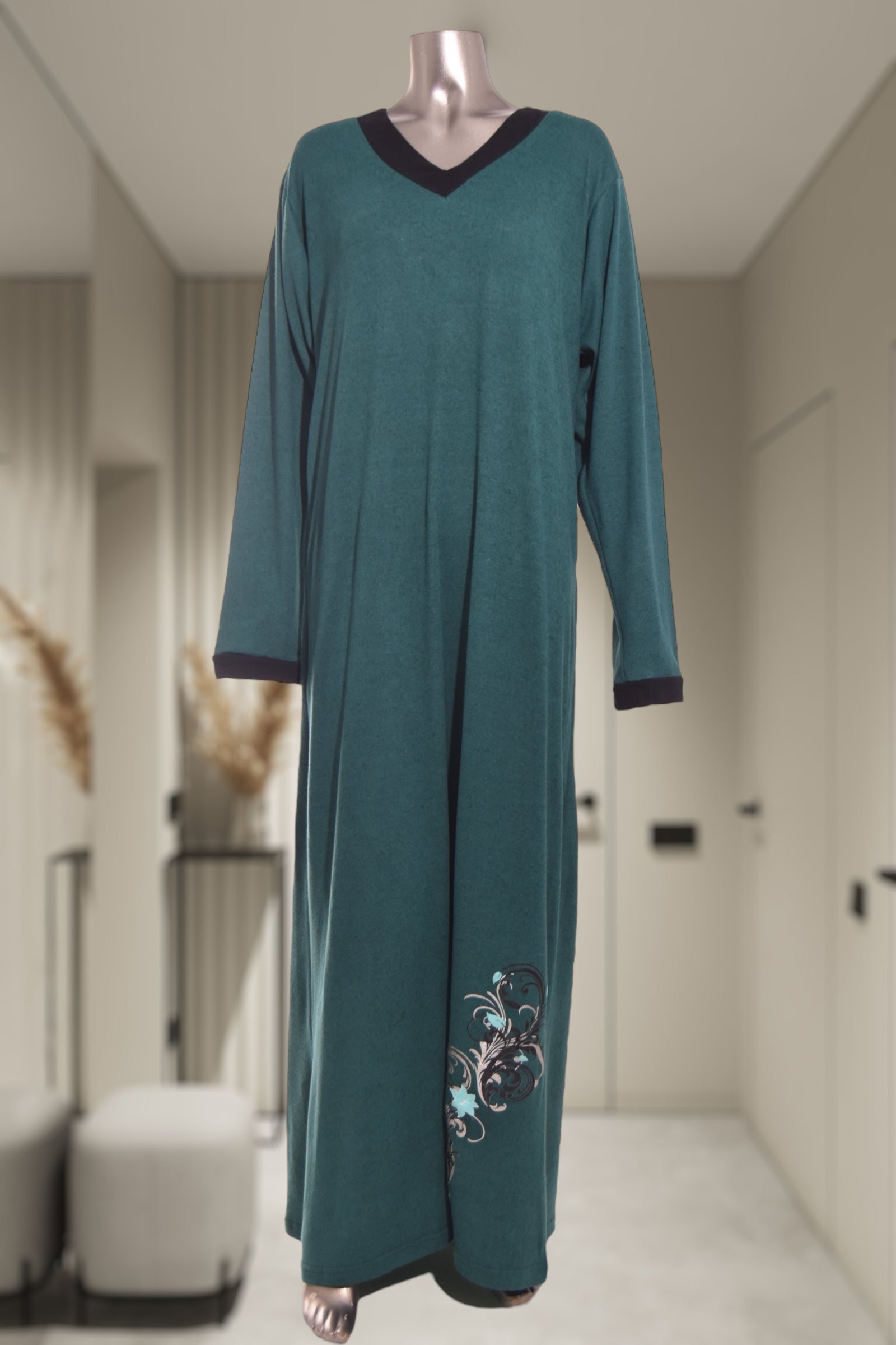 Ladies Velour Zip Gown with Pocket And Hoodie - Blue