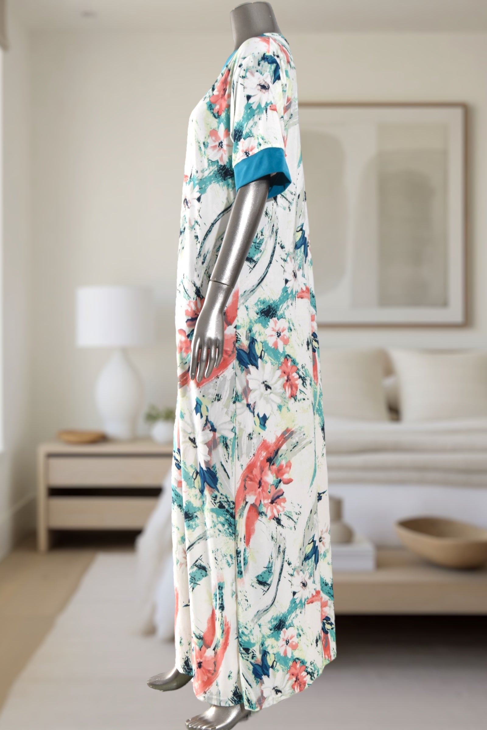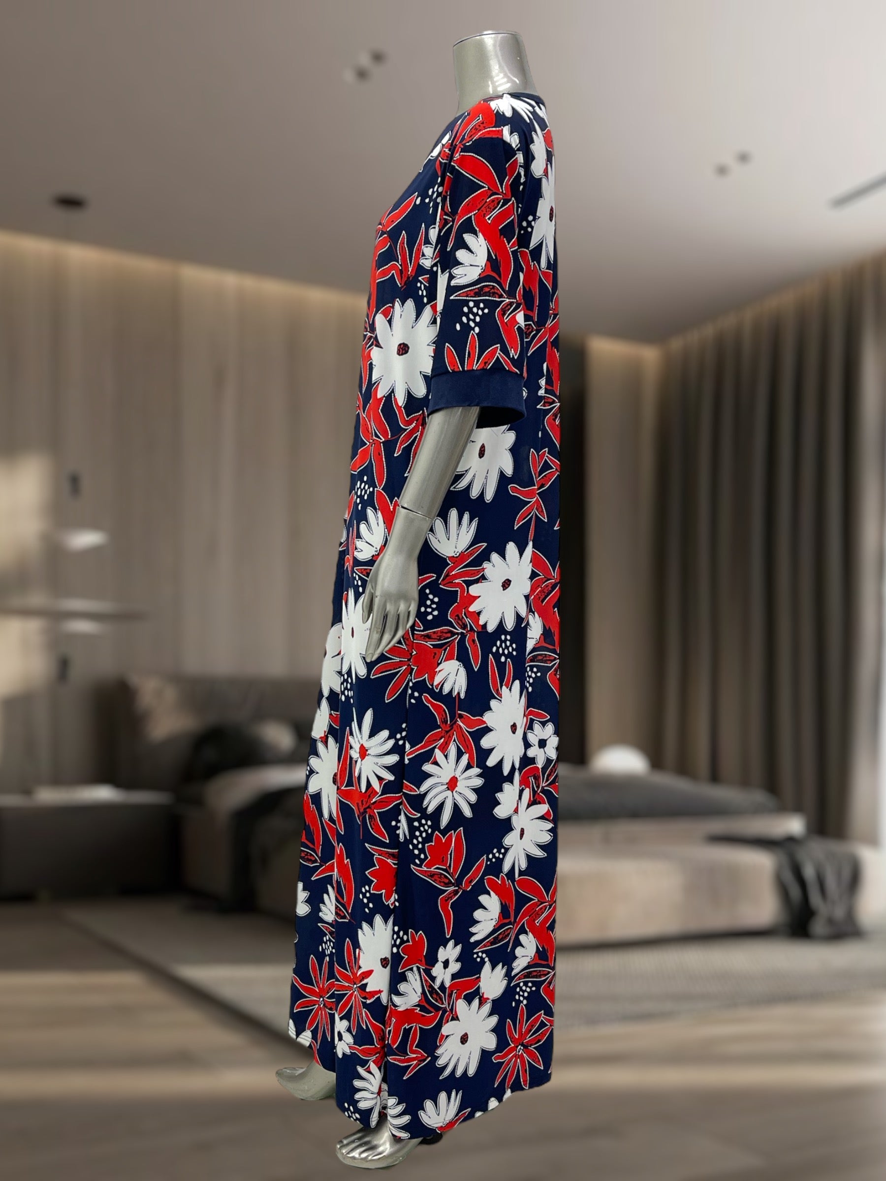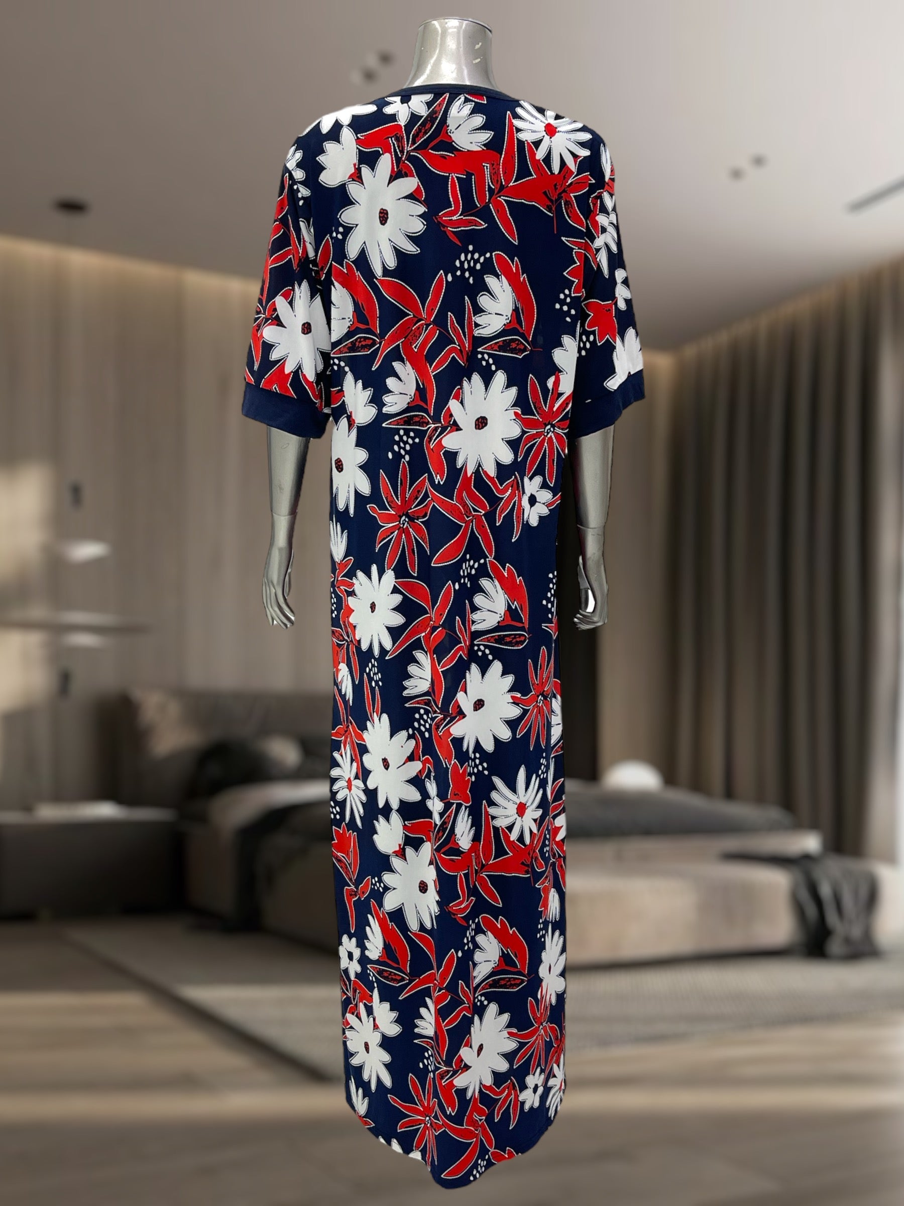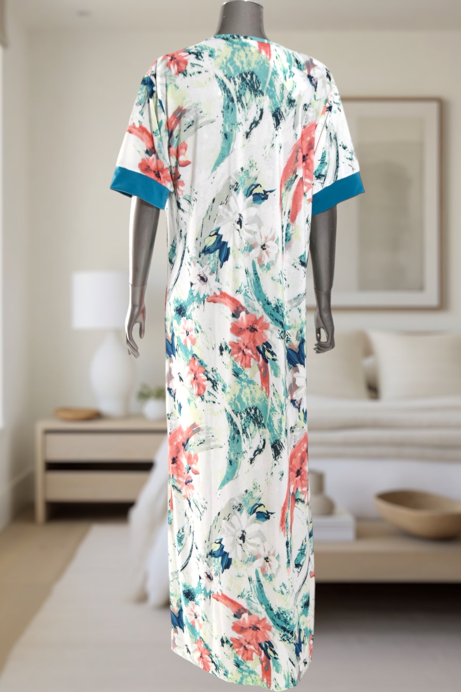 Ladies Velour Zip Gown with Pocket And Hoodie - Blue