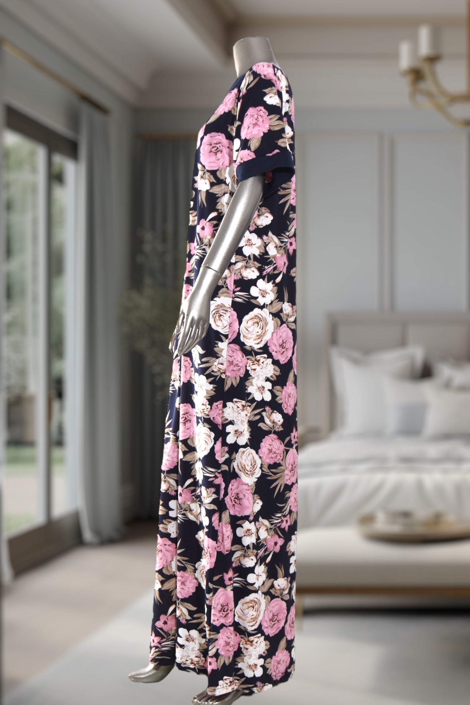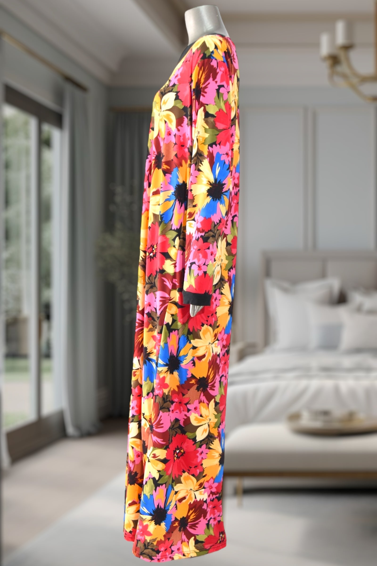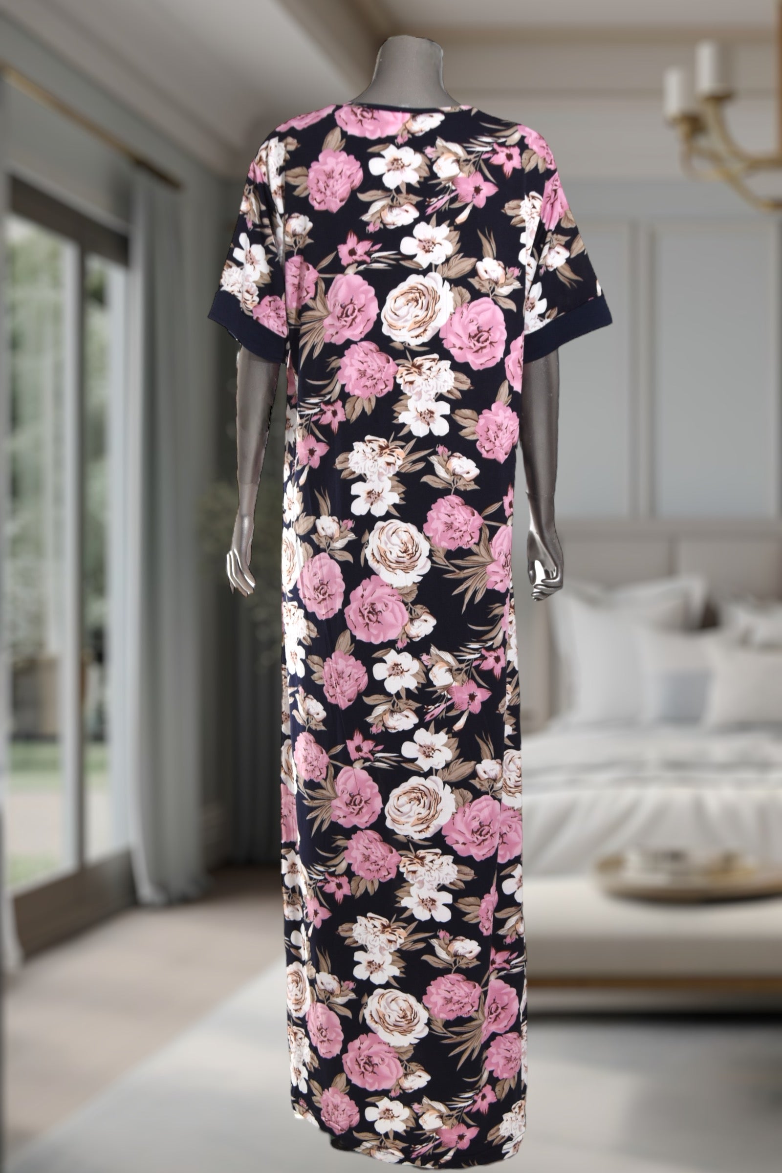 Ladies Velour Zip Gown with Pocket And Hoodie - Black