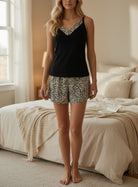 Ladies Black Leopard Print Sleeveless Shorty Pyjama