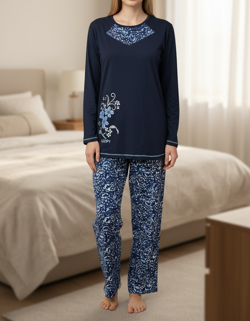 Ladies Navy Flower Print Pyjama