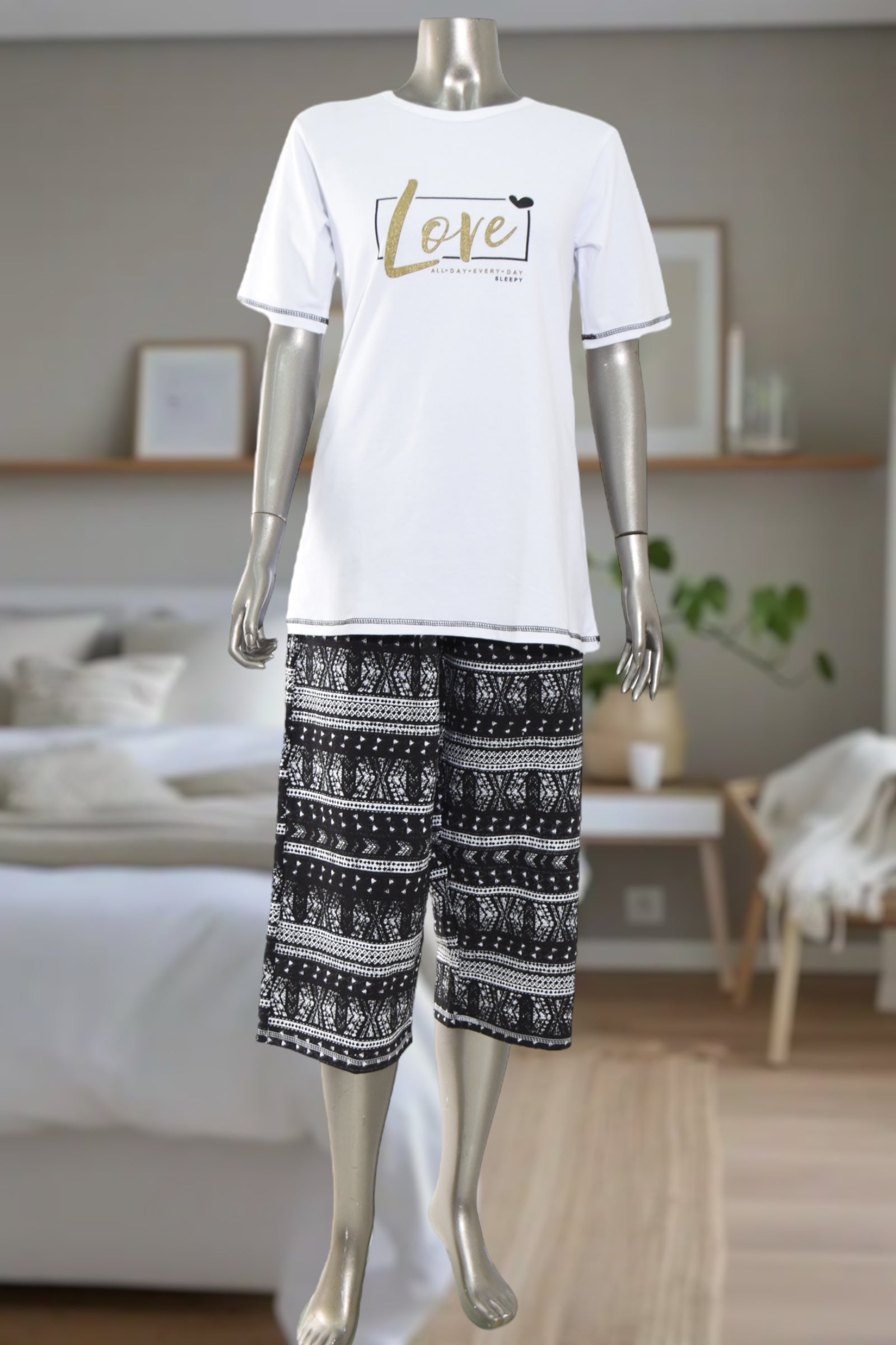 Ladies Souk White 3/4 Love Print Pyjama