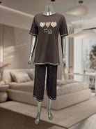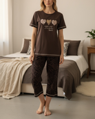 Ladies Souk 3/4 Brown Heart Print Pyjama