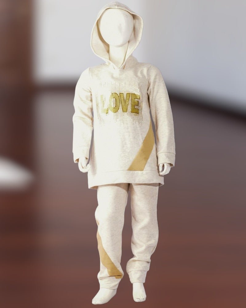 Girls Cream And Gold Love Print Pyjama With Hoodie