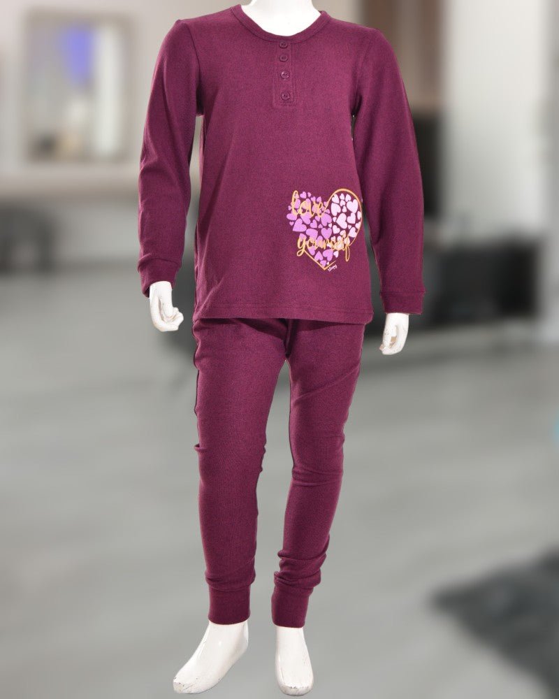Girls Love Yourself Print Wine Pyjama