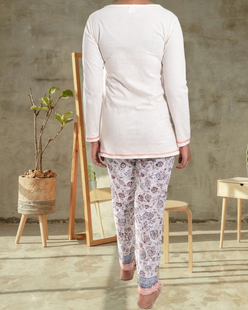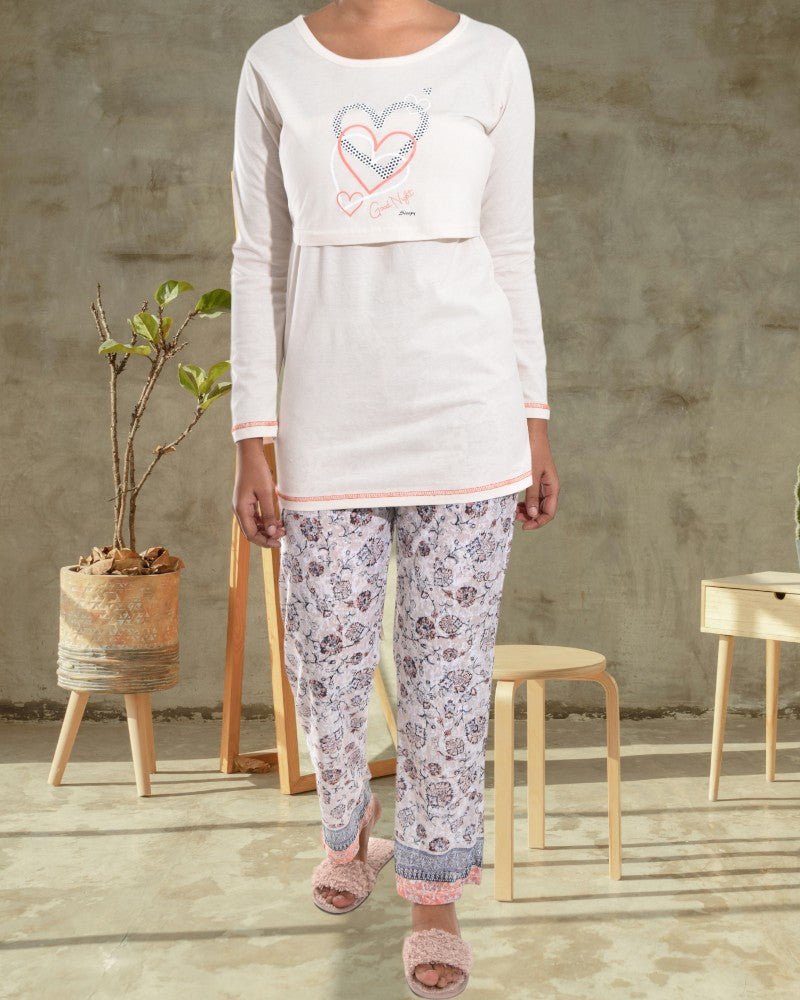 Ladies Breast Feeding Good Night Print Off White Pyjama