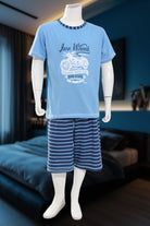 Boys Souk Light Blue Motorcycle Print Pyjama