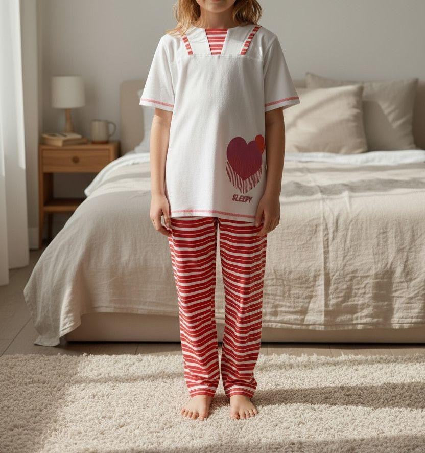 Girls White Heart Print Pyjama