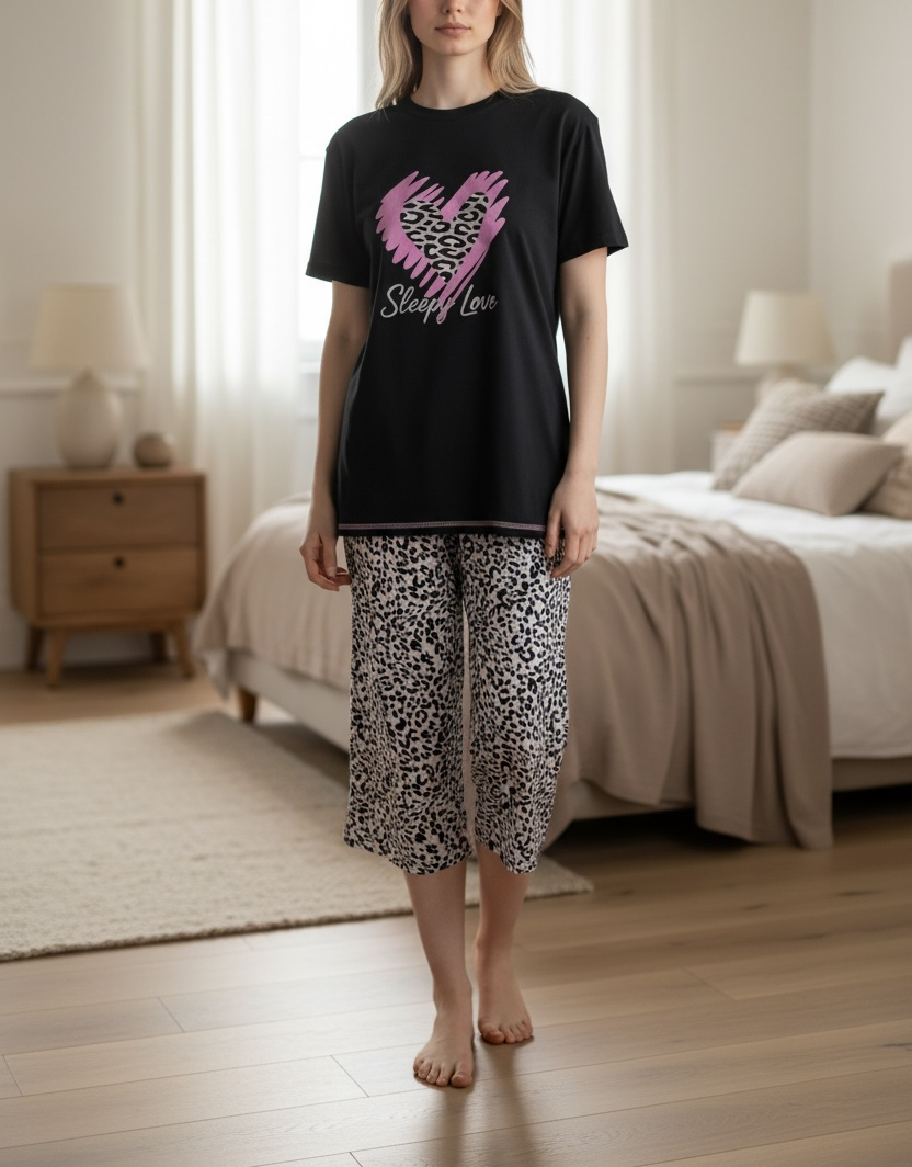 Ladies Souk 3/4 Black Heart Print Pyjama