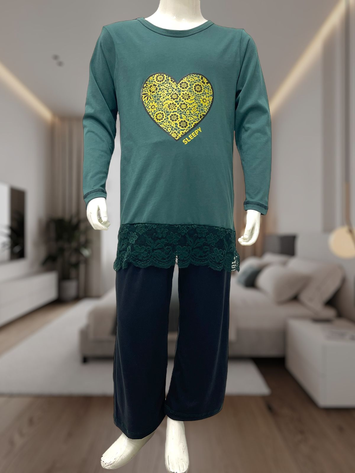 Girls Green Heart Print Pyjama