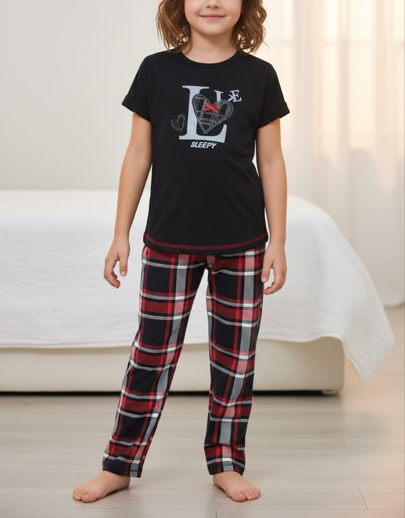 Girls Souk Black Love Print Pyjama