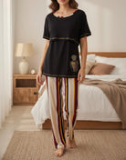 Ladies Black Breast Feeding Perfume Bottle Print Pyjama