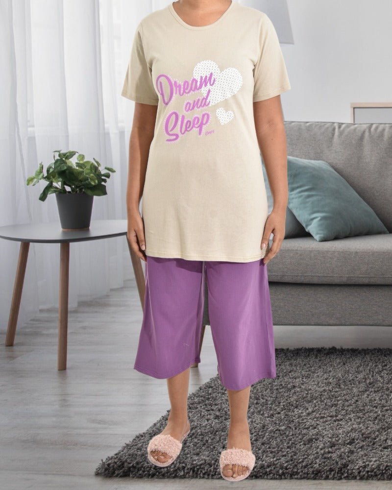 Ladies 3/4 Souk Special Beige & Purple Dream Pyjama