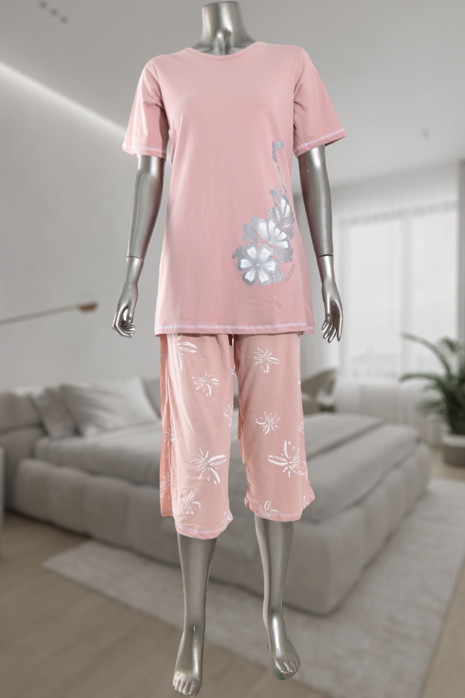 Ladies Souk 3/4 Mink Flower Print Pyjama