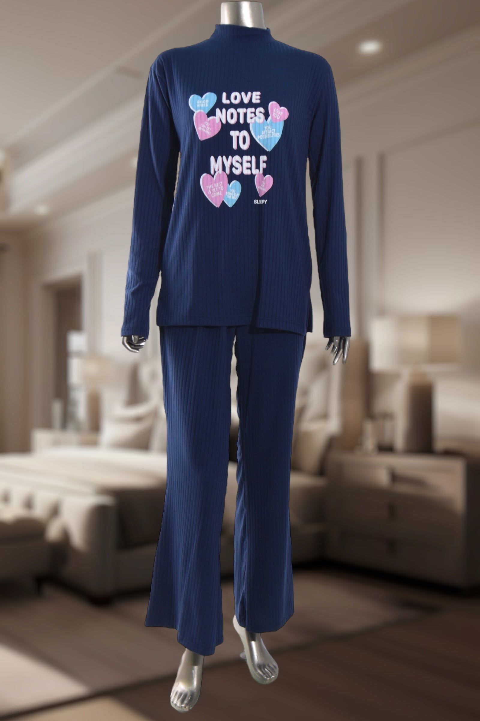 Ladies Navy Love Note Print Pyjama