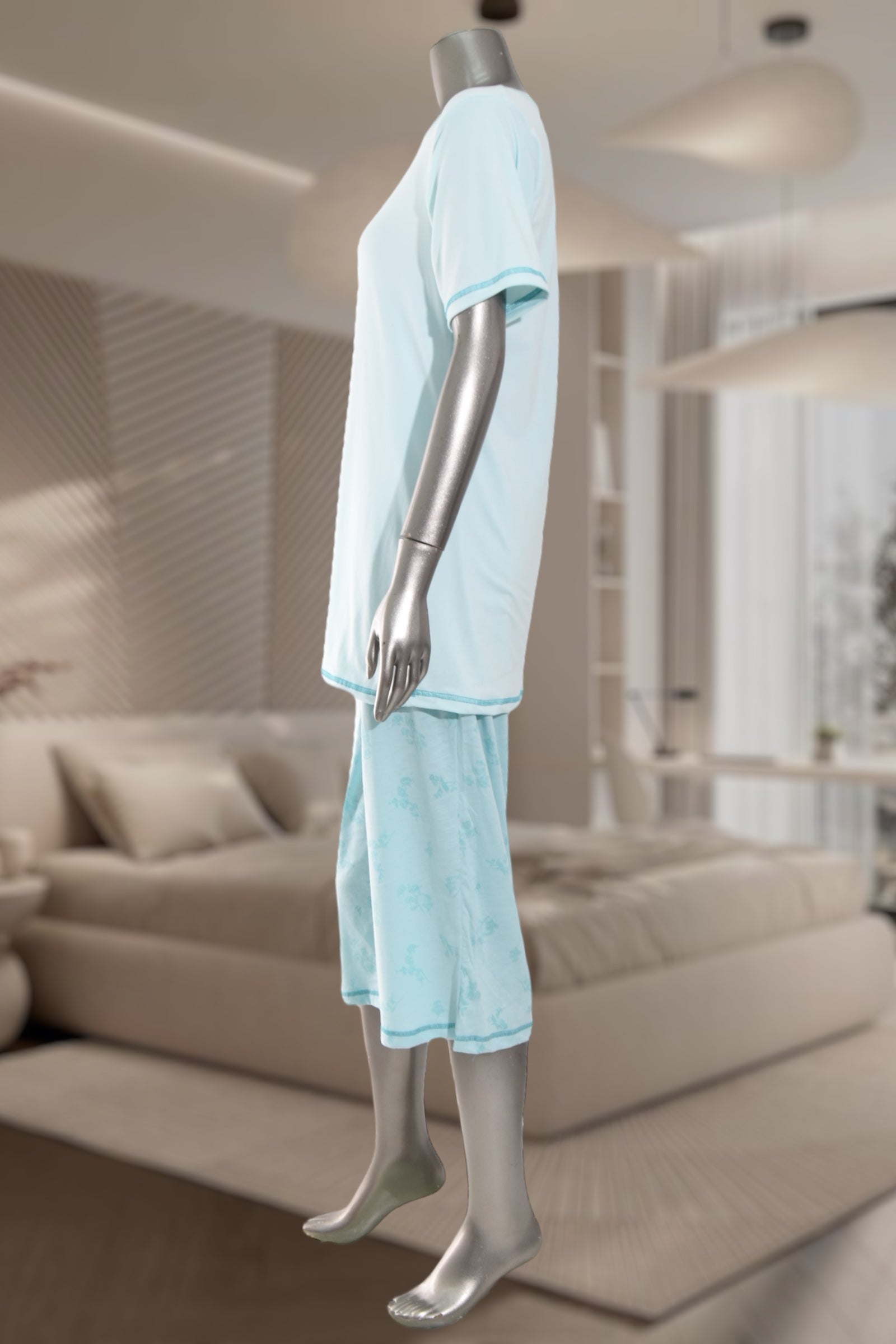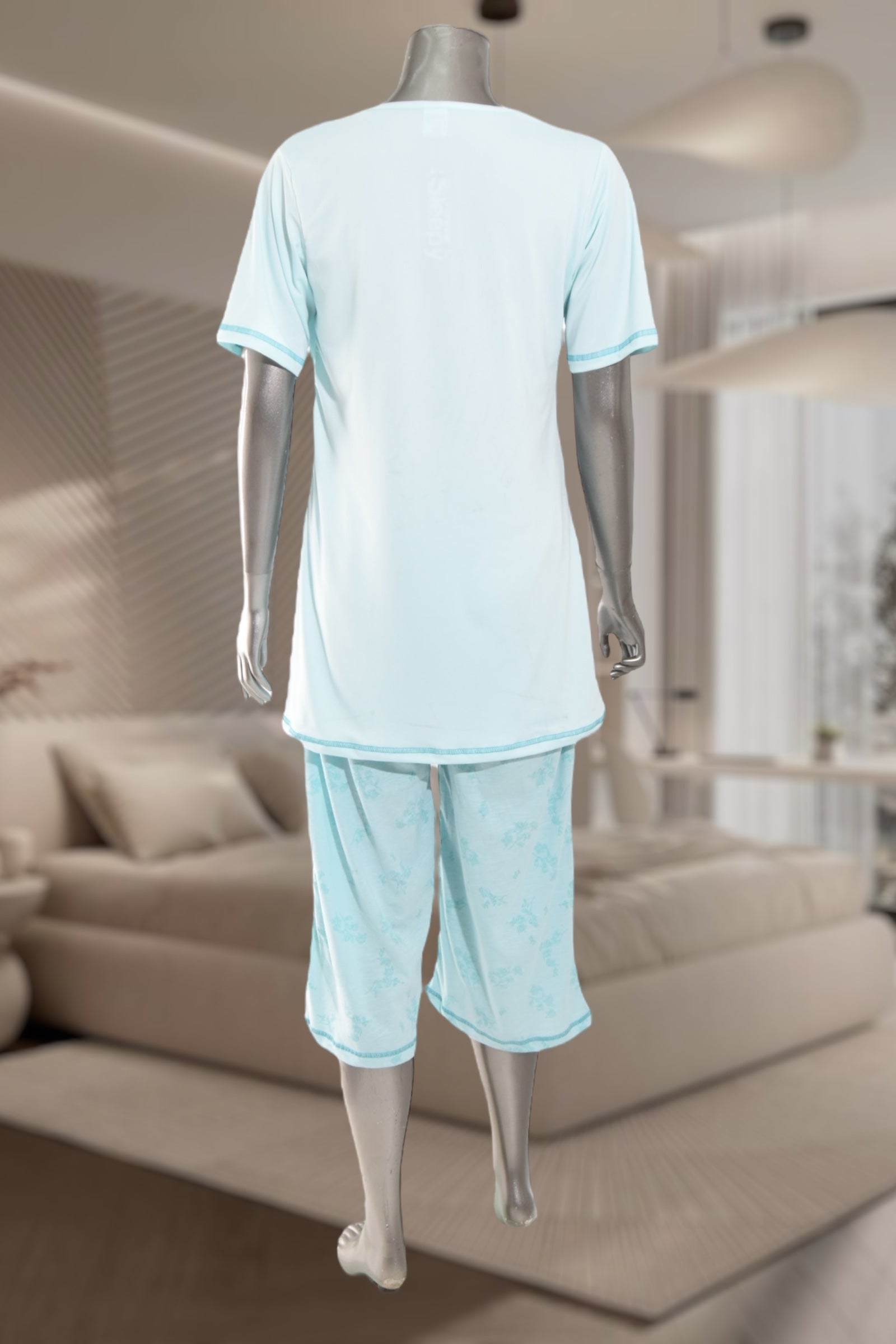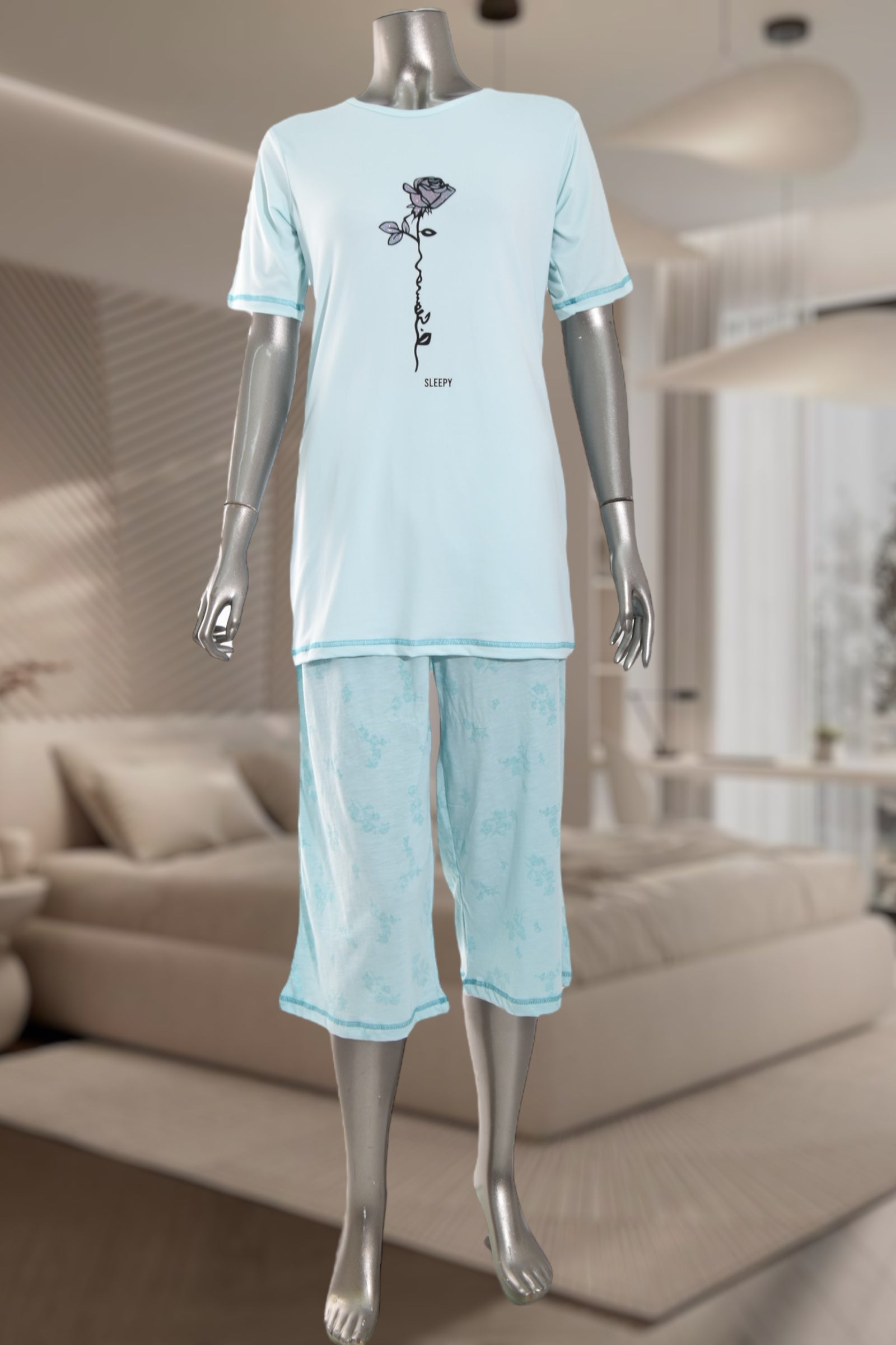 Ladies Souk 3/4 Light Blue Flower Print Pyjama